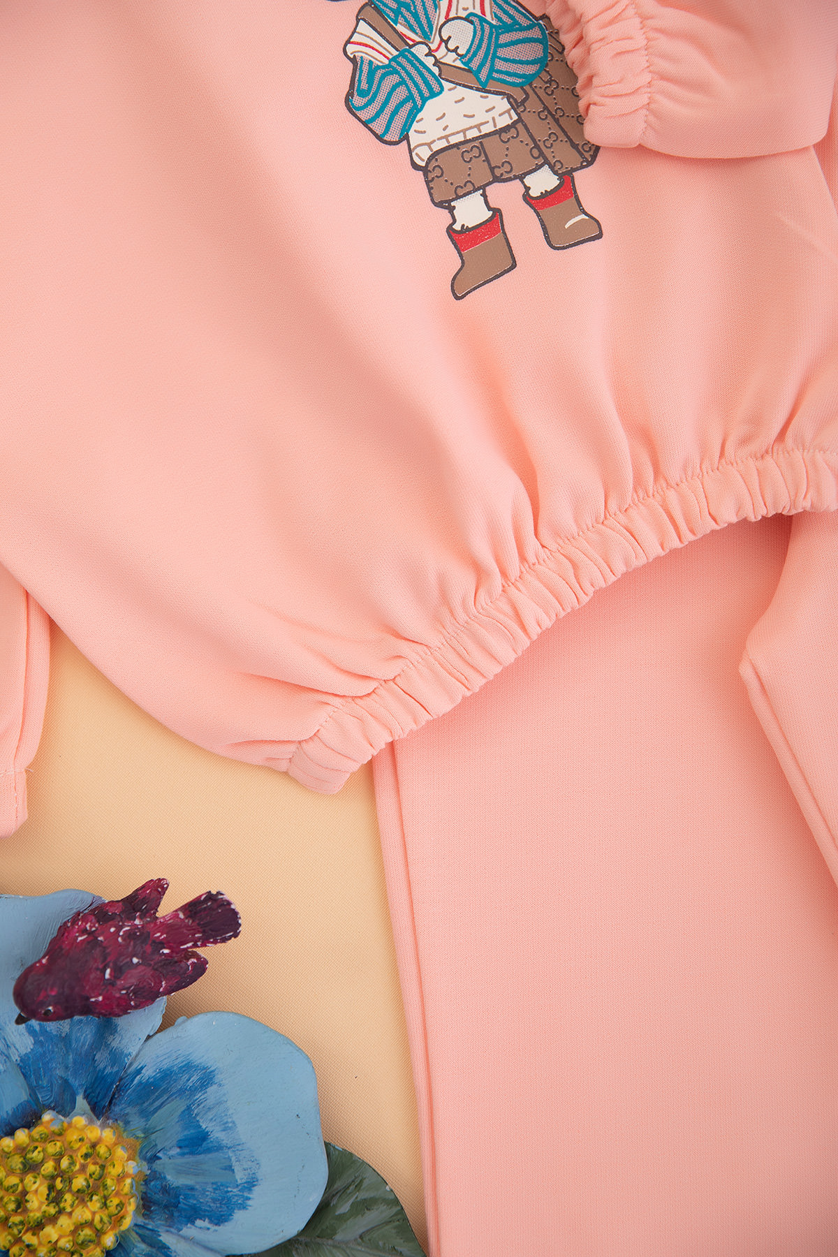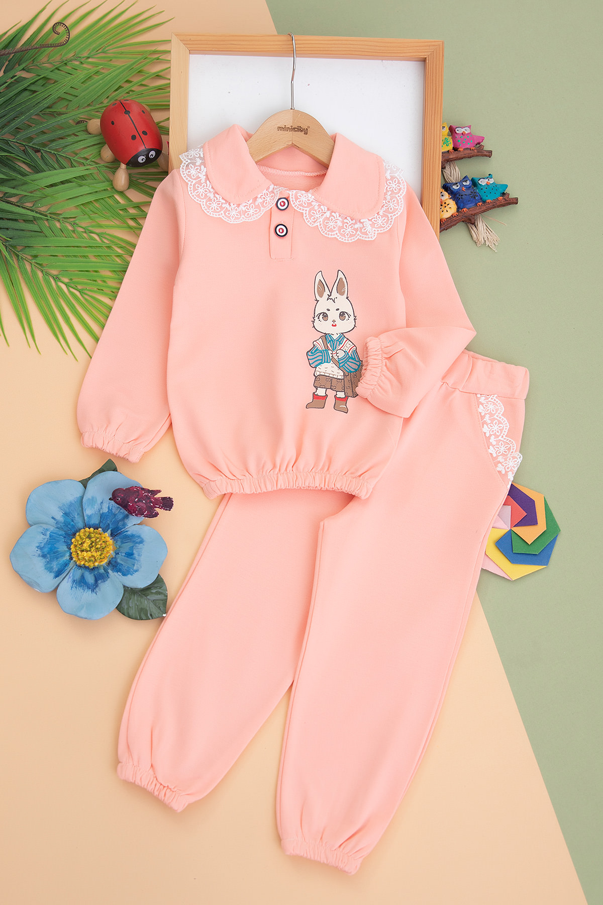 Kız Çocuk Tavşan Baskılı Yakası Fistolu Takım (2-5 Yaş)