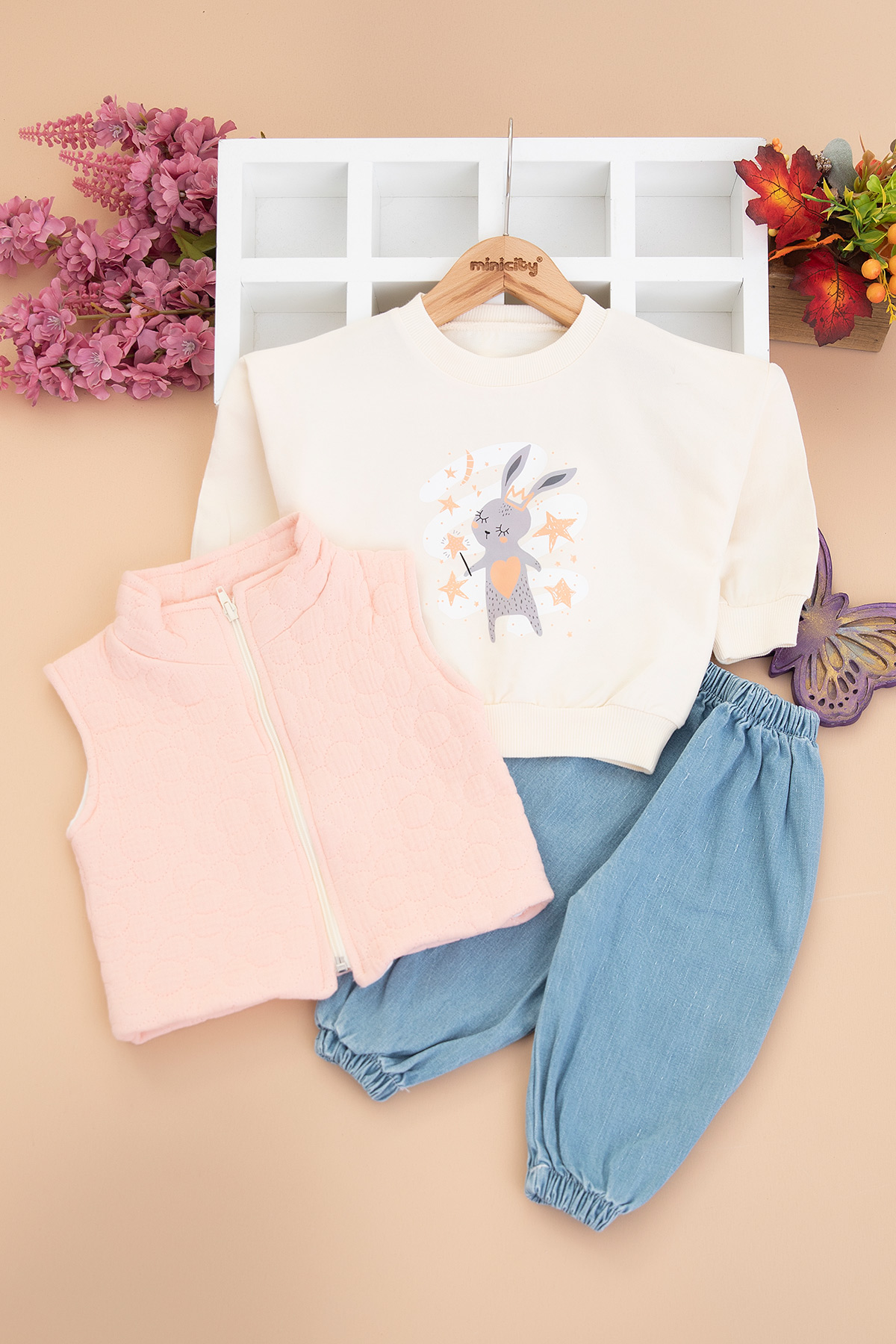 Kız Çocuk Tavşan Müslin Yelekli Takım - 1766 (1-3 Yaş)