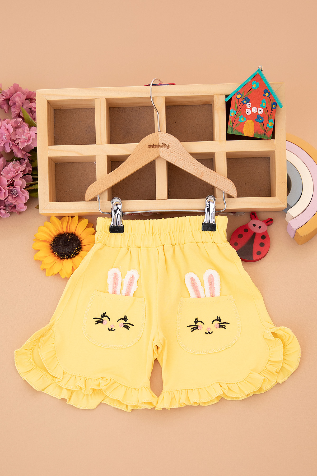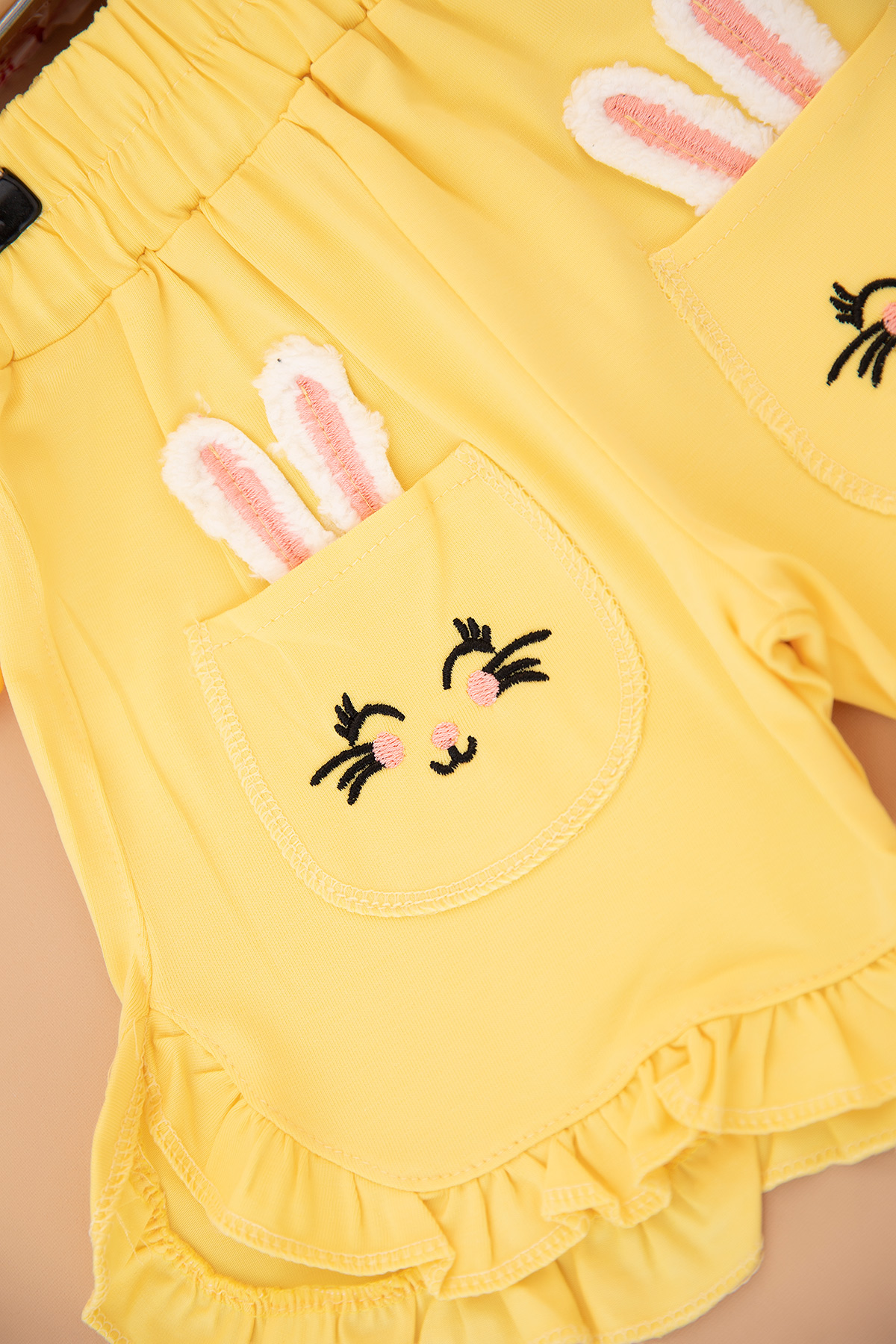 Kız Çocuk Tavşan Nakışlı Fırfırlı Şort - (3-10 Yaş)