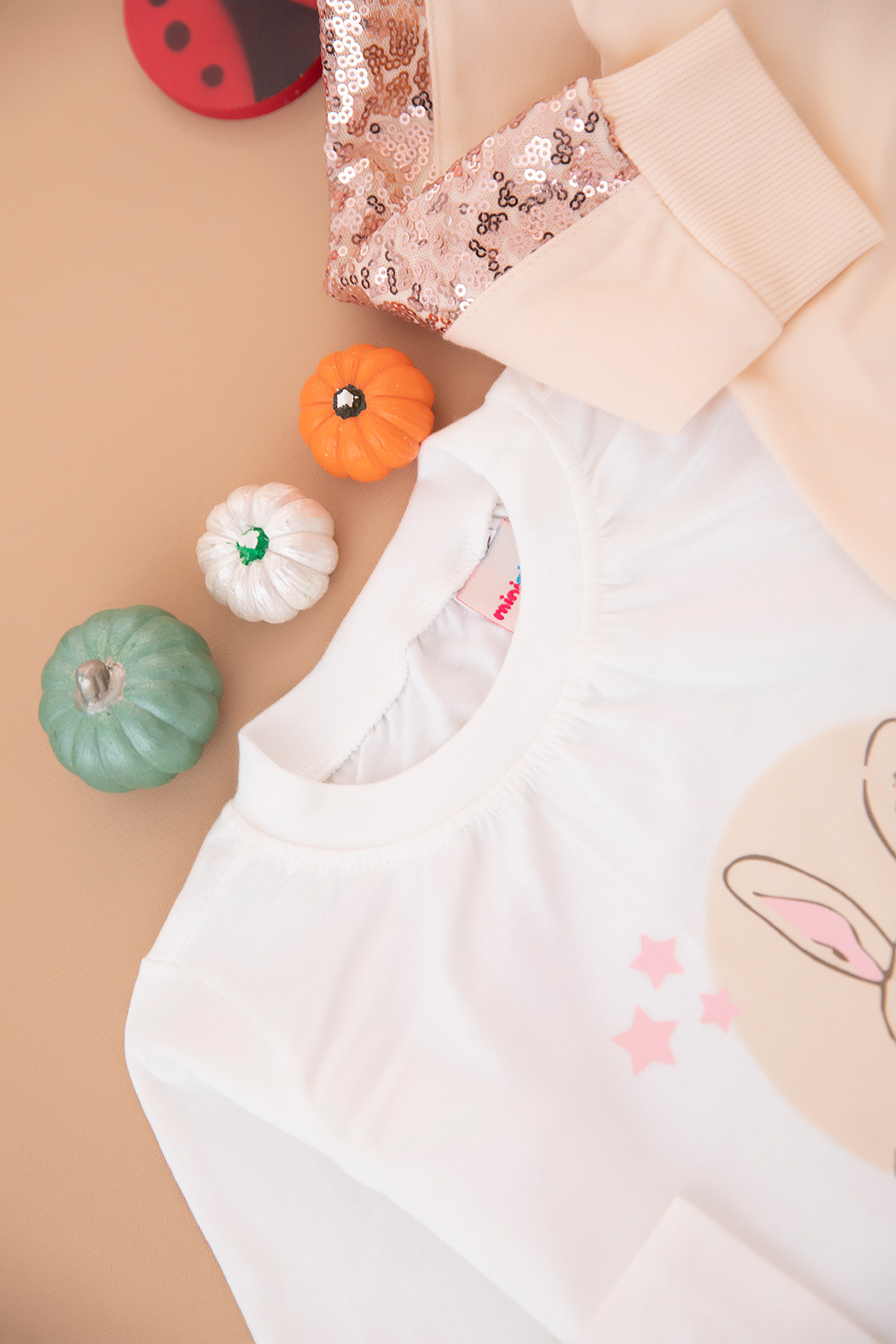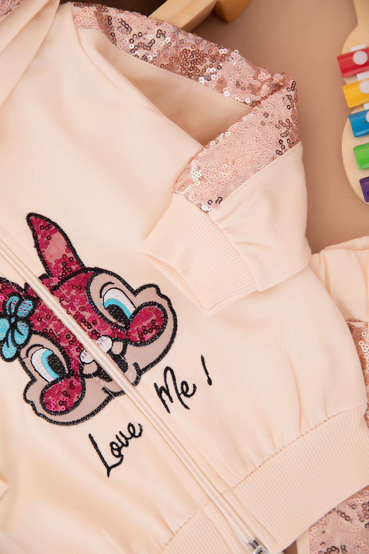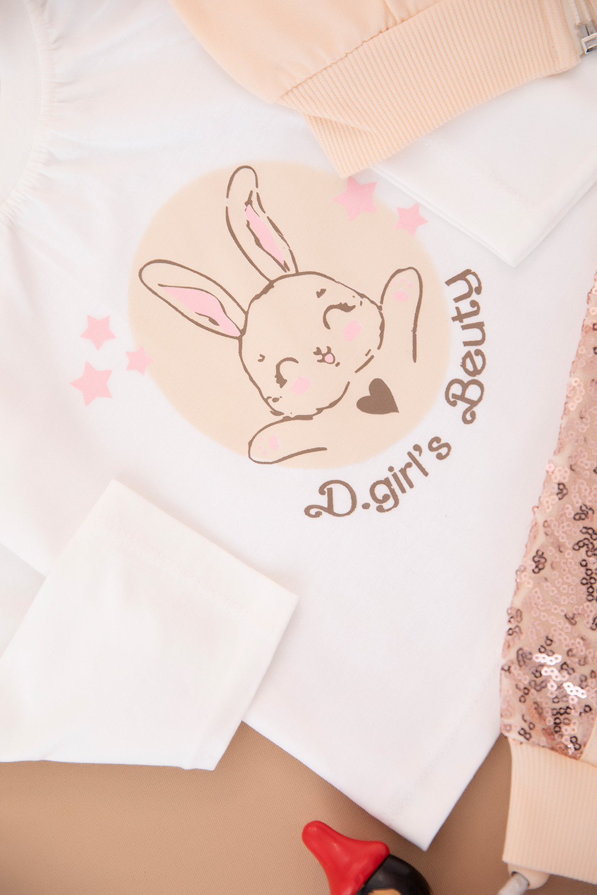 Kız Çocuk Tavşan Nakışlı Hırka 3`Lü Takım - 40622 (2-5 Yaş)