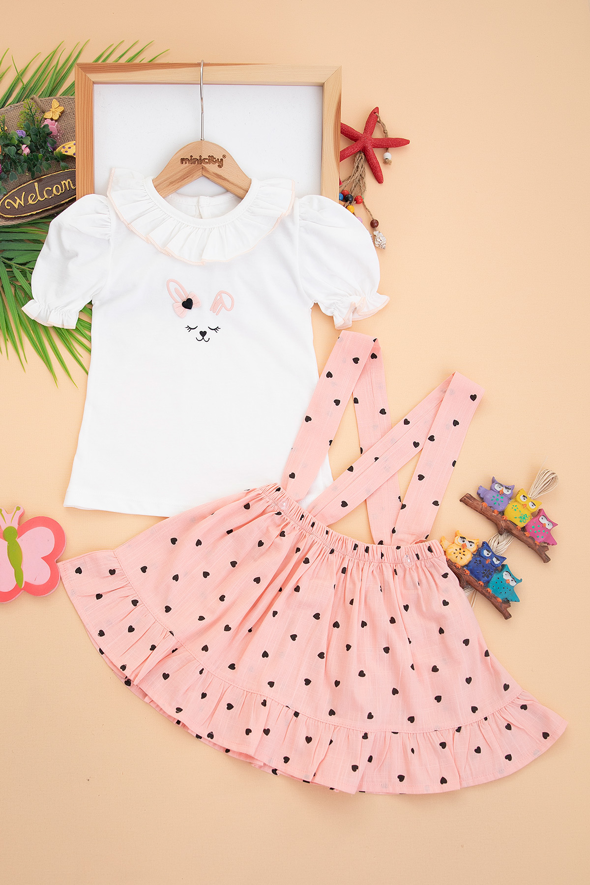 Kız Çocuk Tavşan Nakışlı Kalpli Salopet - 5035 (2-5 Yaş)