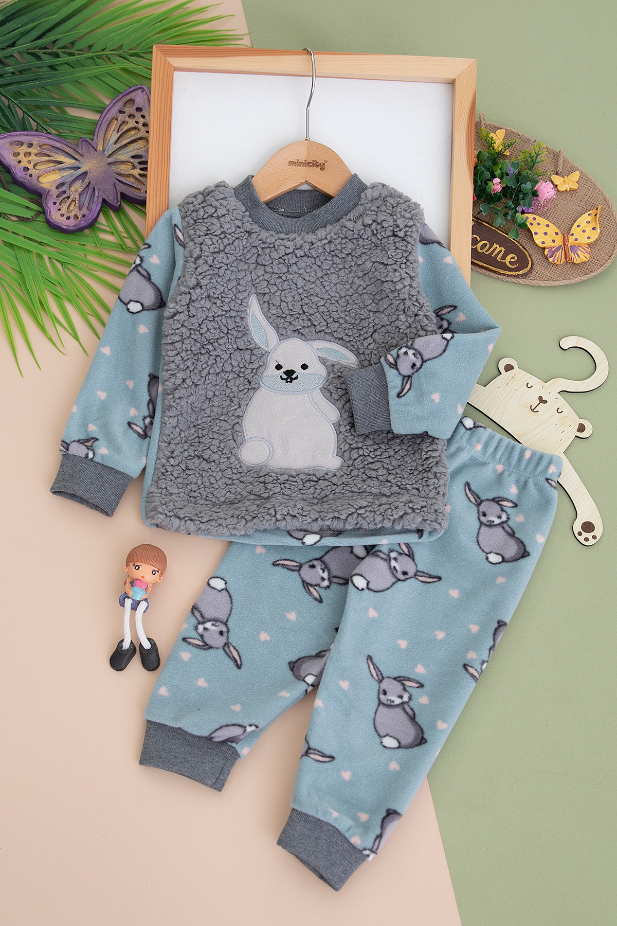 Kız Çocuk Tavşan Nakışlı Welsoft Takım - 070 (1-4 Yaş)
