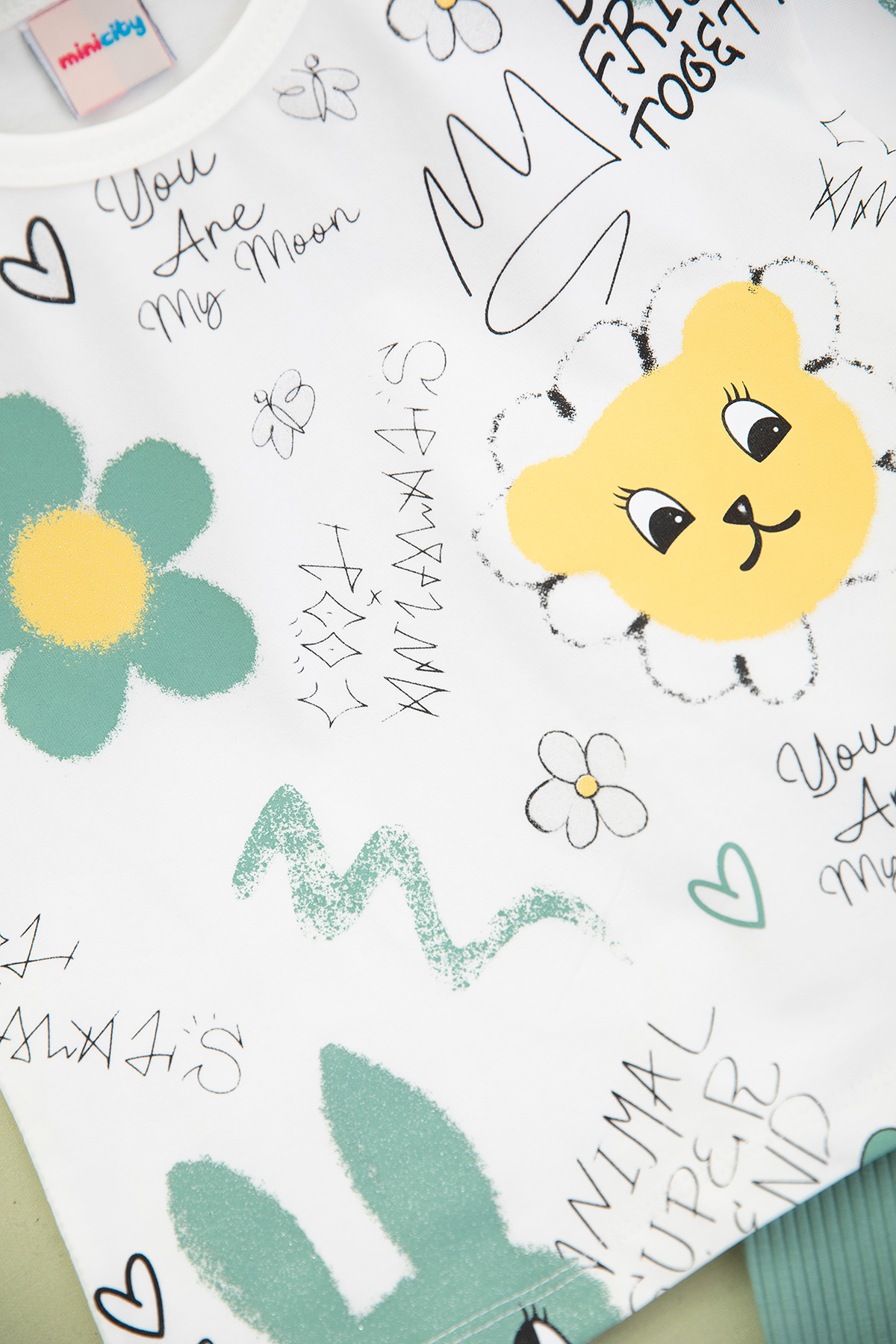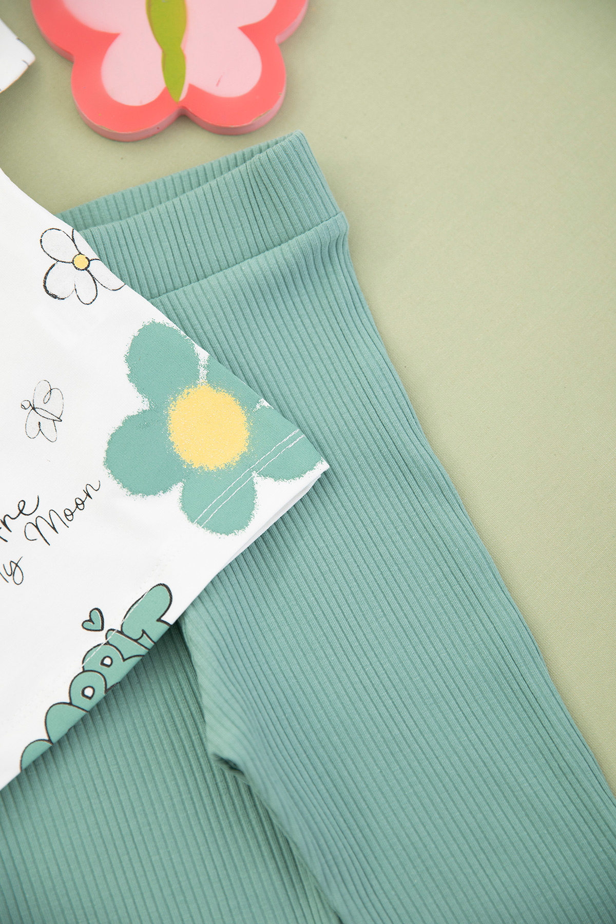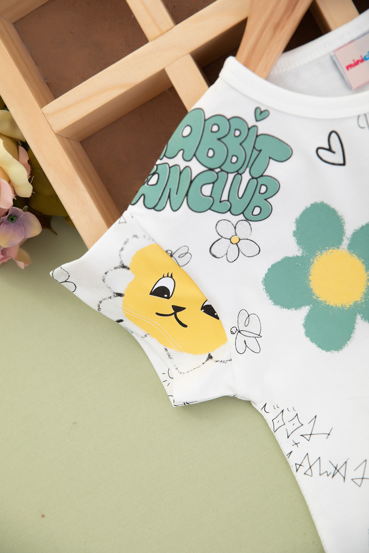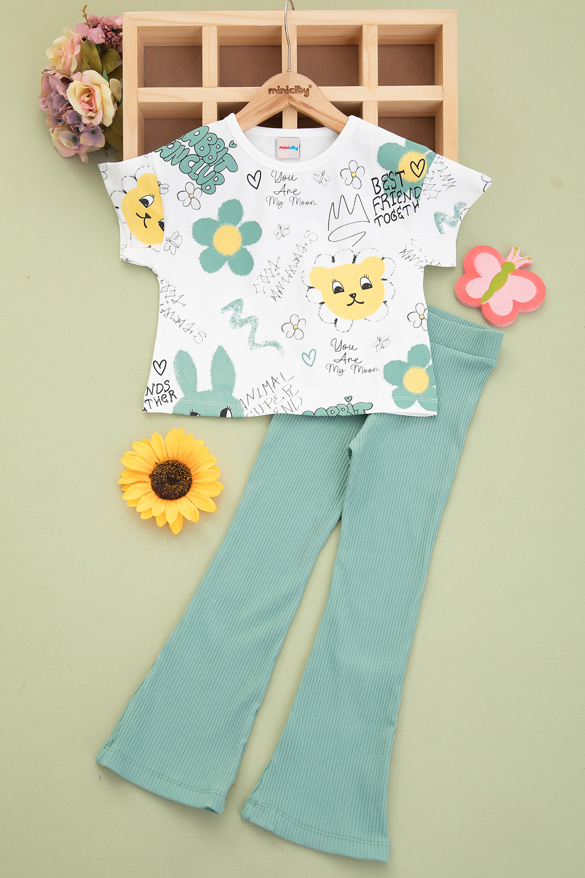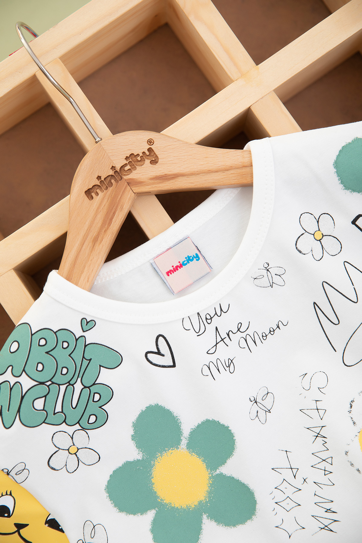 Kız Çocuk Tavşan Pano Baskılı İspanyol Paça Takım - 6278 (3-10 Yaş)
