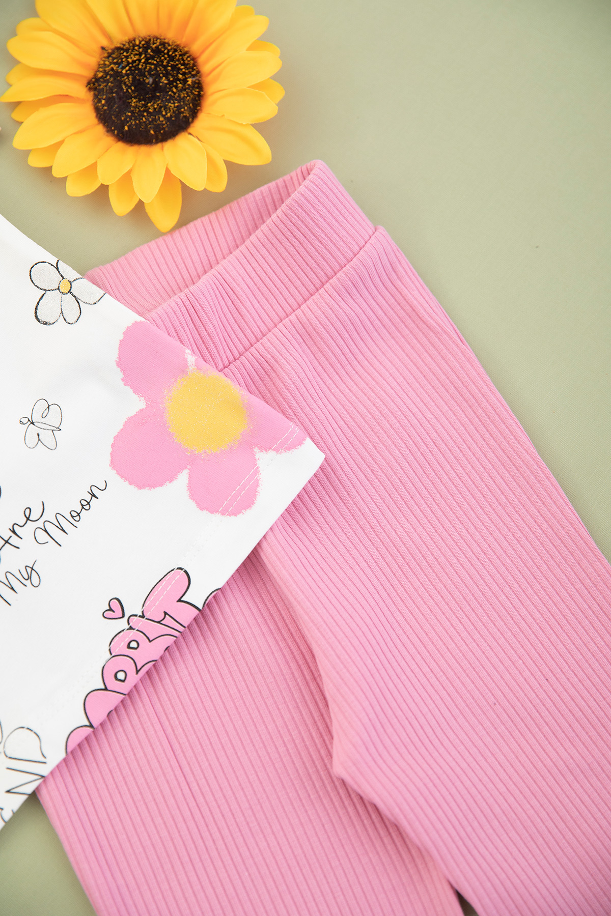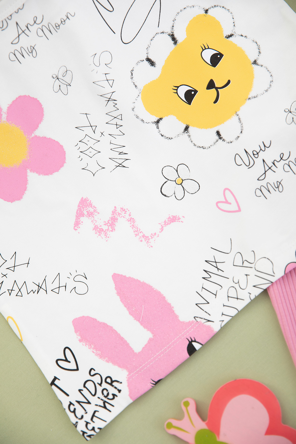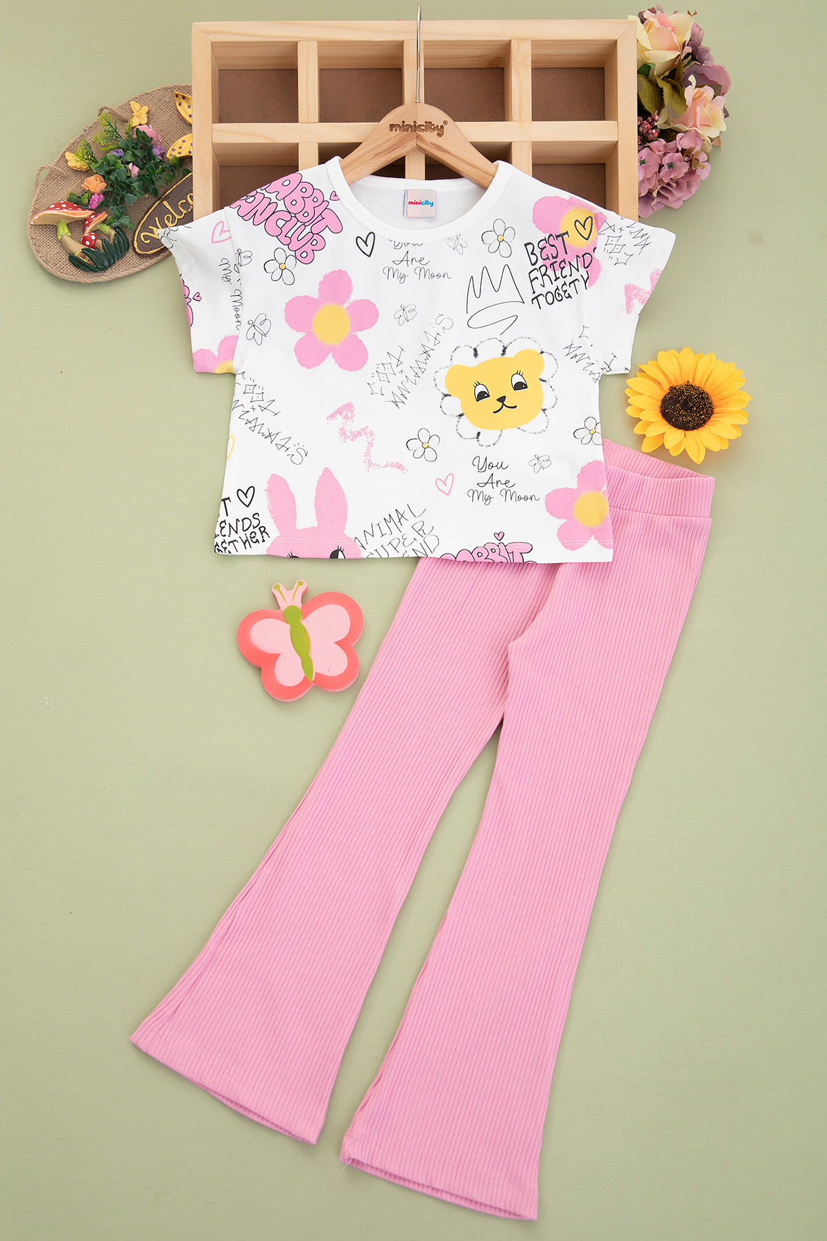 Kız Çocuk Tavşan Pano Baskılı İspanyol Paça Takım - 6278 (3-10 Yaş)