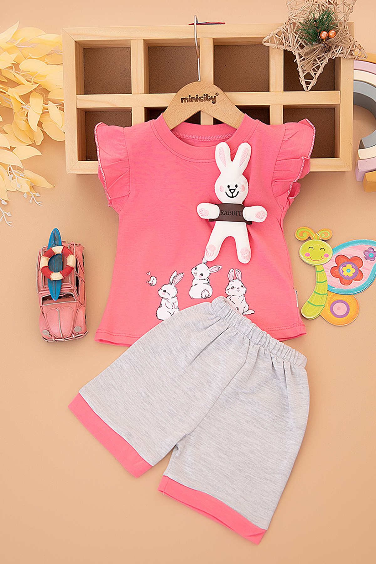 Kız Çocuk Tavşanlı Şortlu Takım - 3020 (1-3 Yaş)