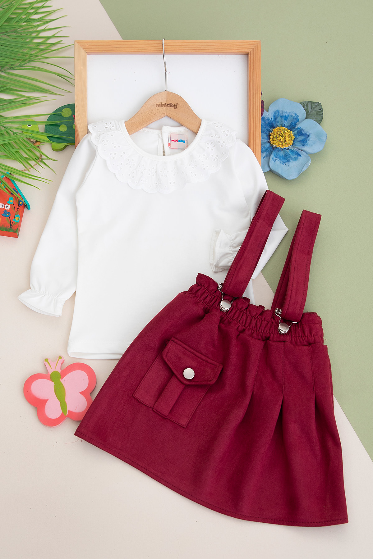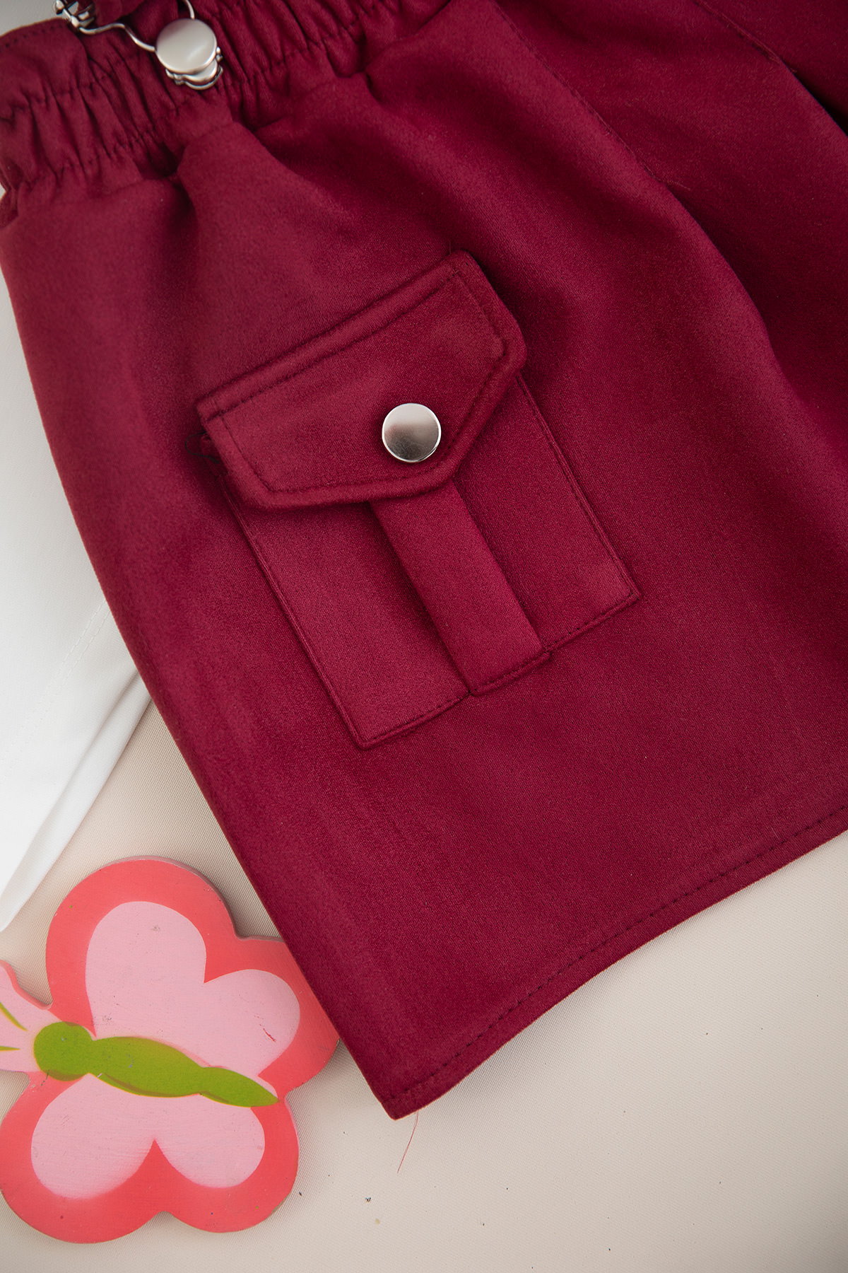 Kız Çocuk Tek Cepli Süet Salopet Takım - 1086 (3-7 Yaş)