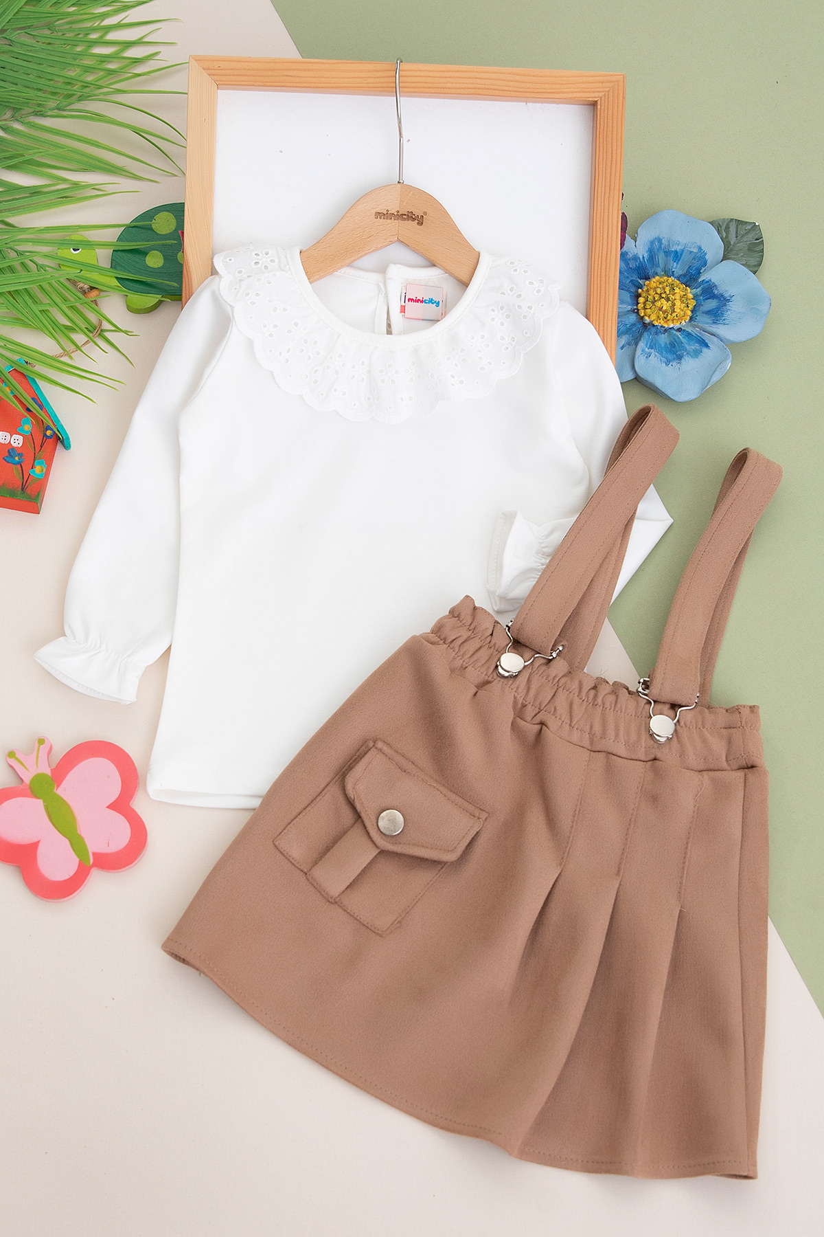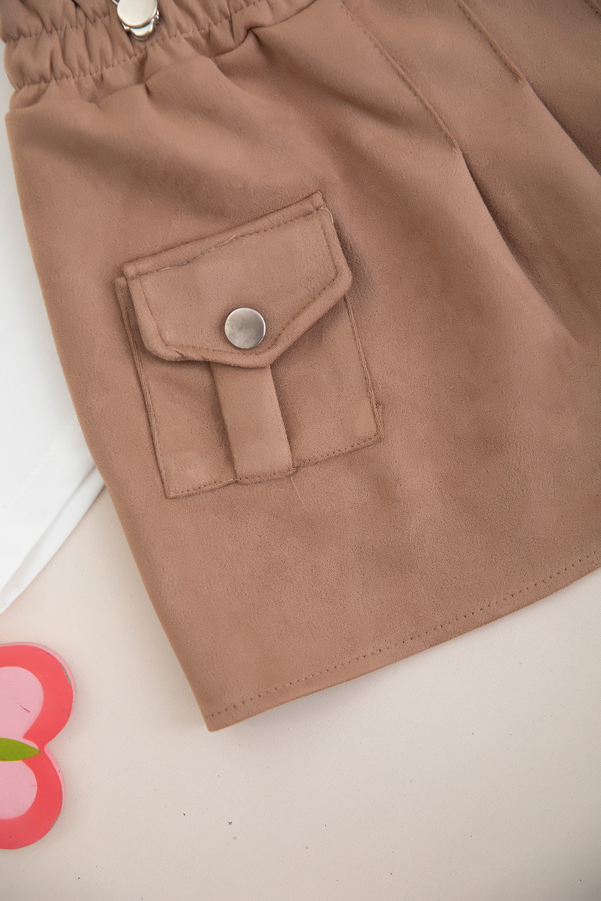 Kız Çocuk Tek Cepli Süet Salopet Takım - 1086 (3-7 Yaş)