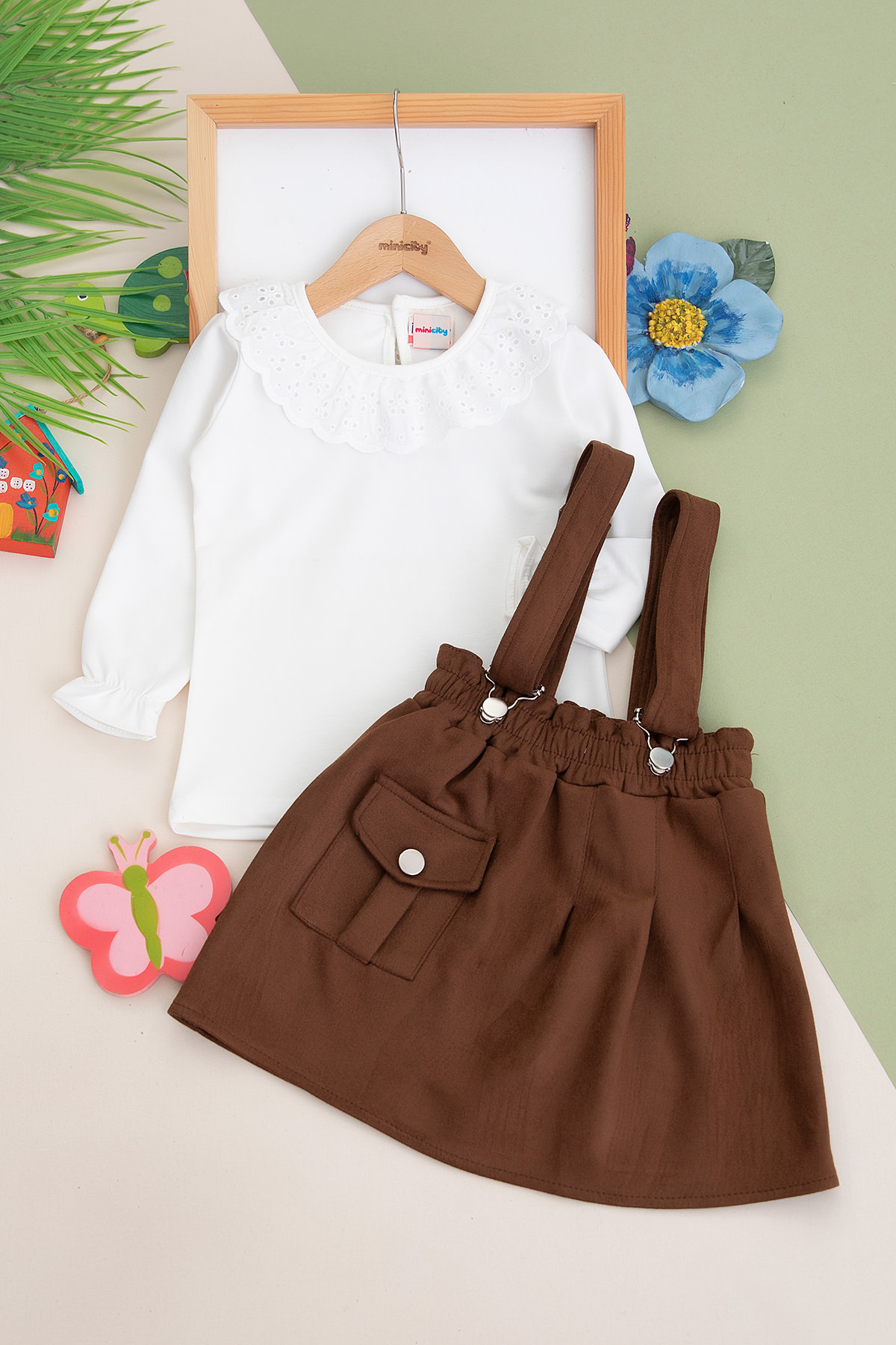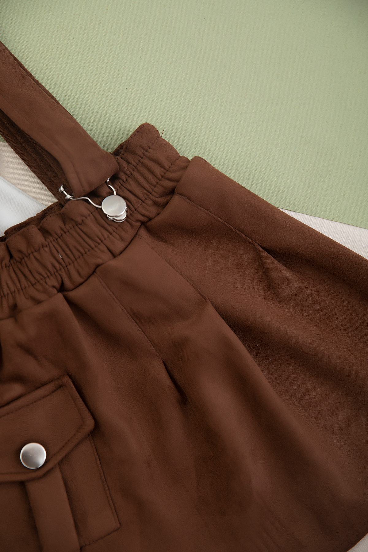 Kız Çocuk Tek Cepli Süet Salopet Takım - 1086 (8-12 Yaş)
