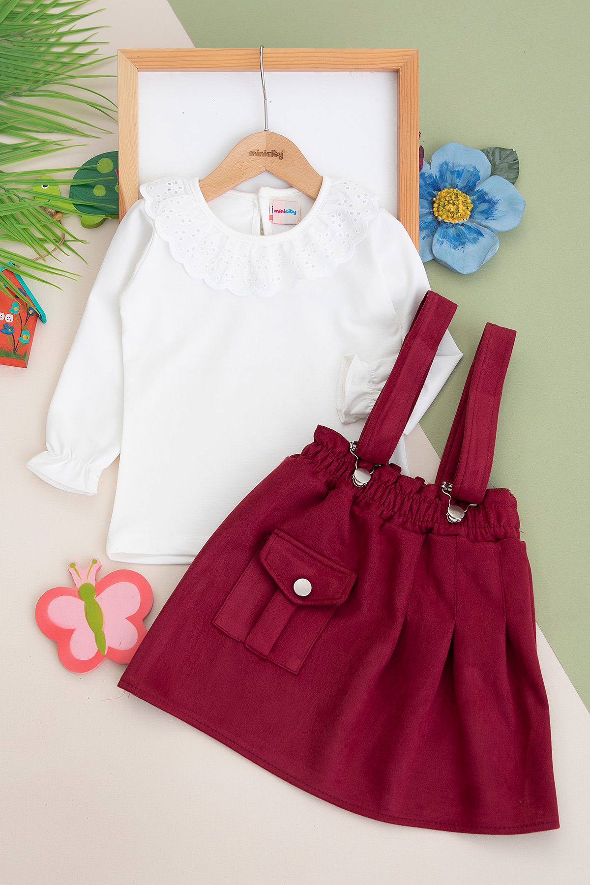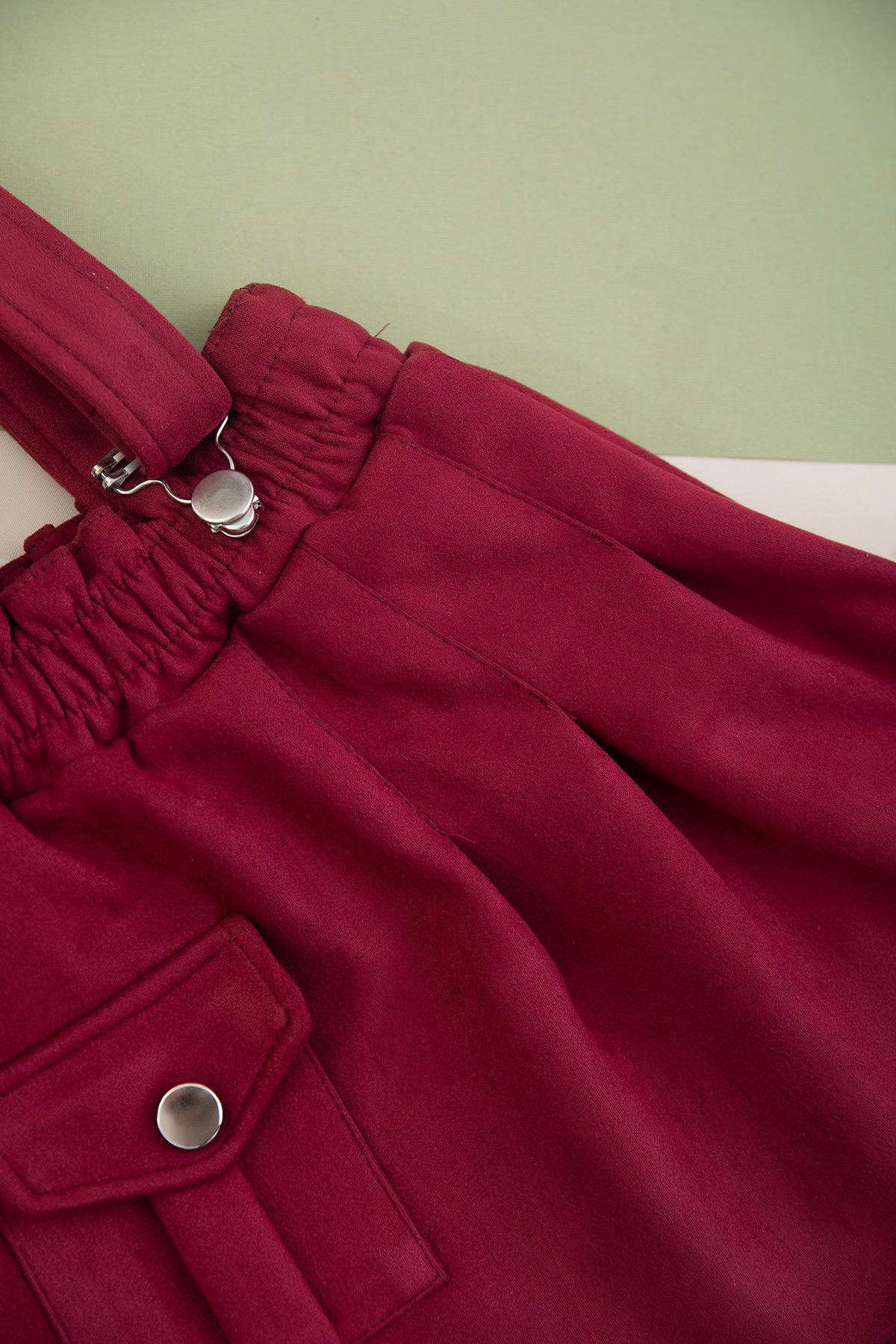 Kız Çocuk Tek Cepli Süet Salopet Takım - 1086 (8-12 Yaş)