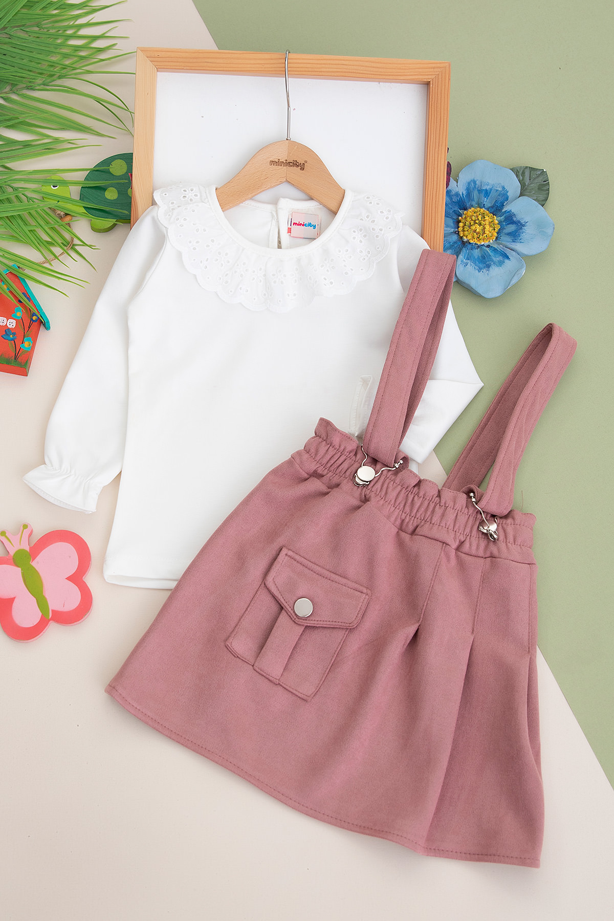 Kız Çocuk Tek Cepli Süet Salopet Takım - 1086 (8-12 Yaş)
