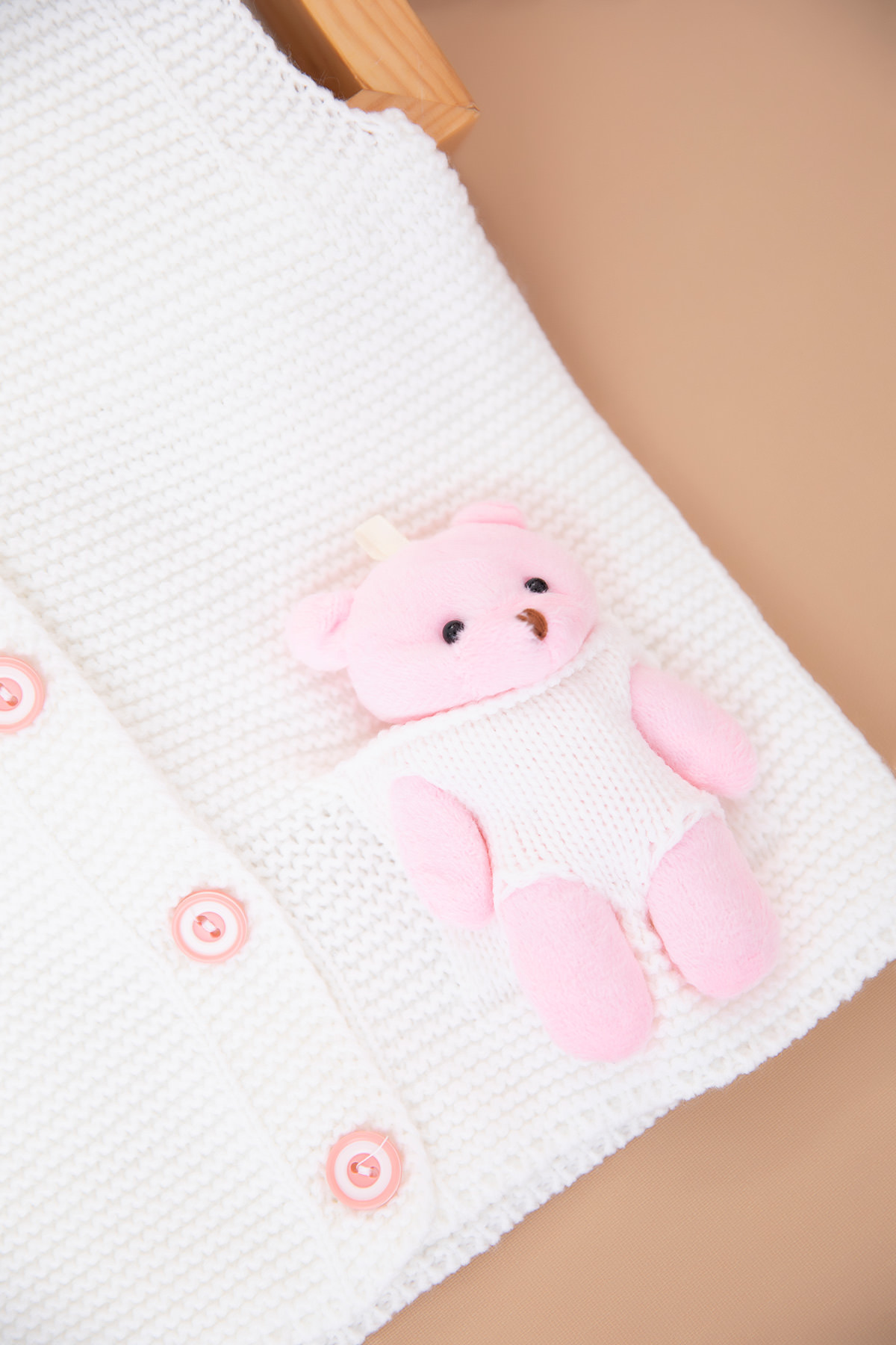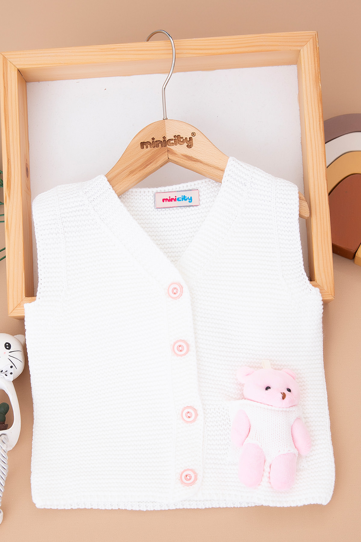 Kız Çocuk Tek Renk Ayılı Triko Yelek - 495 (1-5 Yaş)