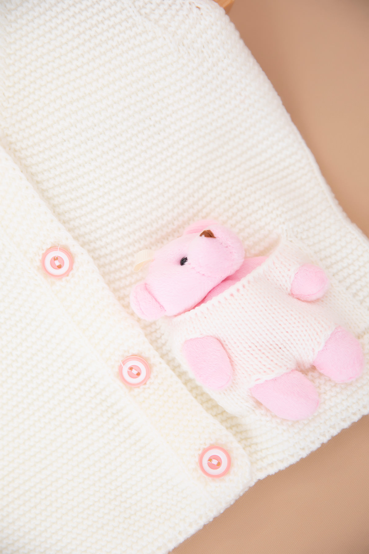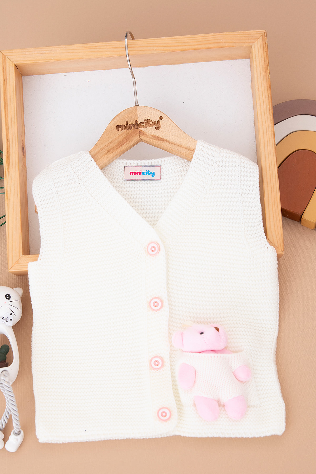 Kız Çocuk Tek Renk Ayılı Triko Yelek - 495 (1-5 Yaş)