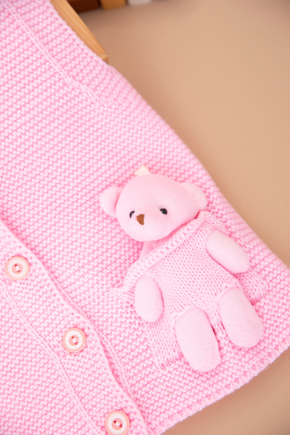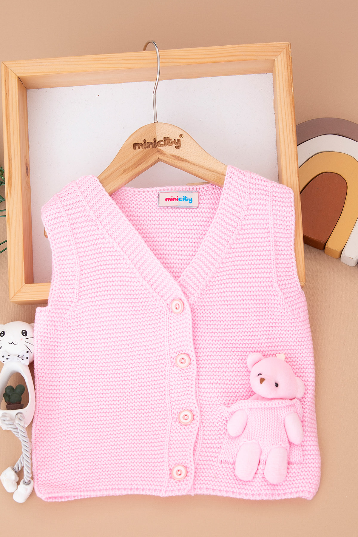 Kız Çocuk Tek Renk Ayılı Triko Yelek - 495 (1-5 Yaş)