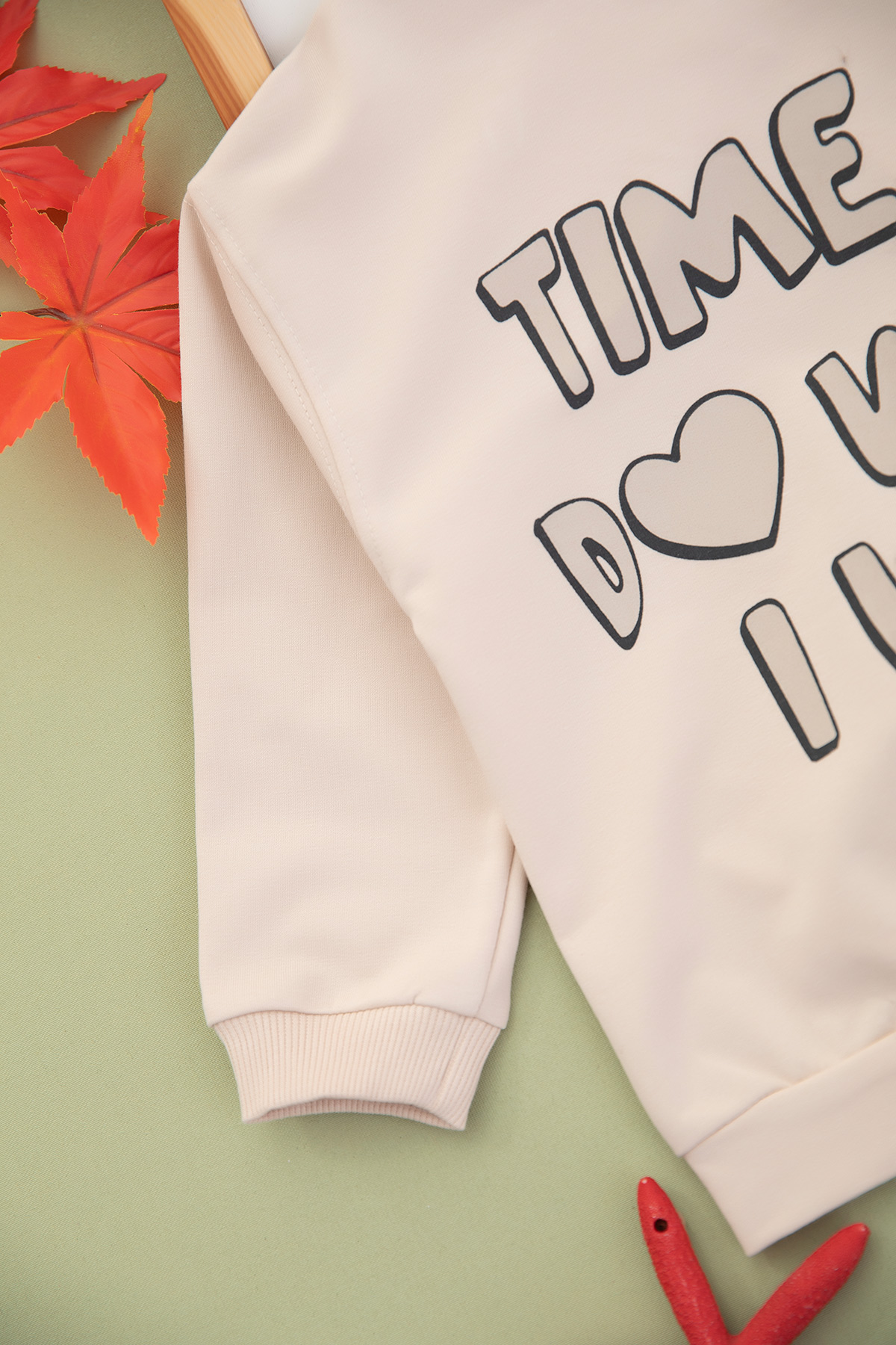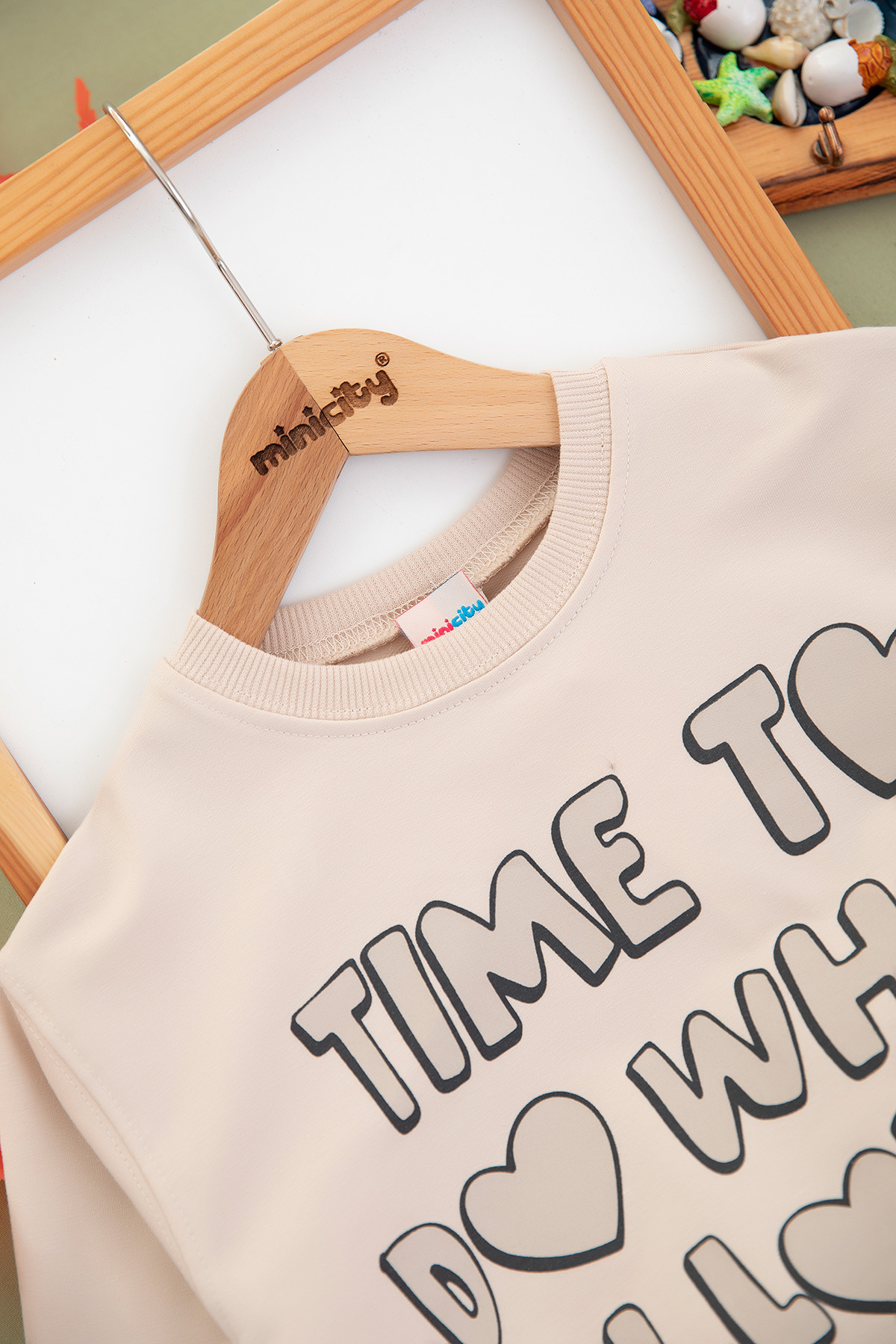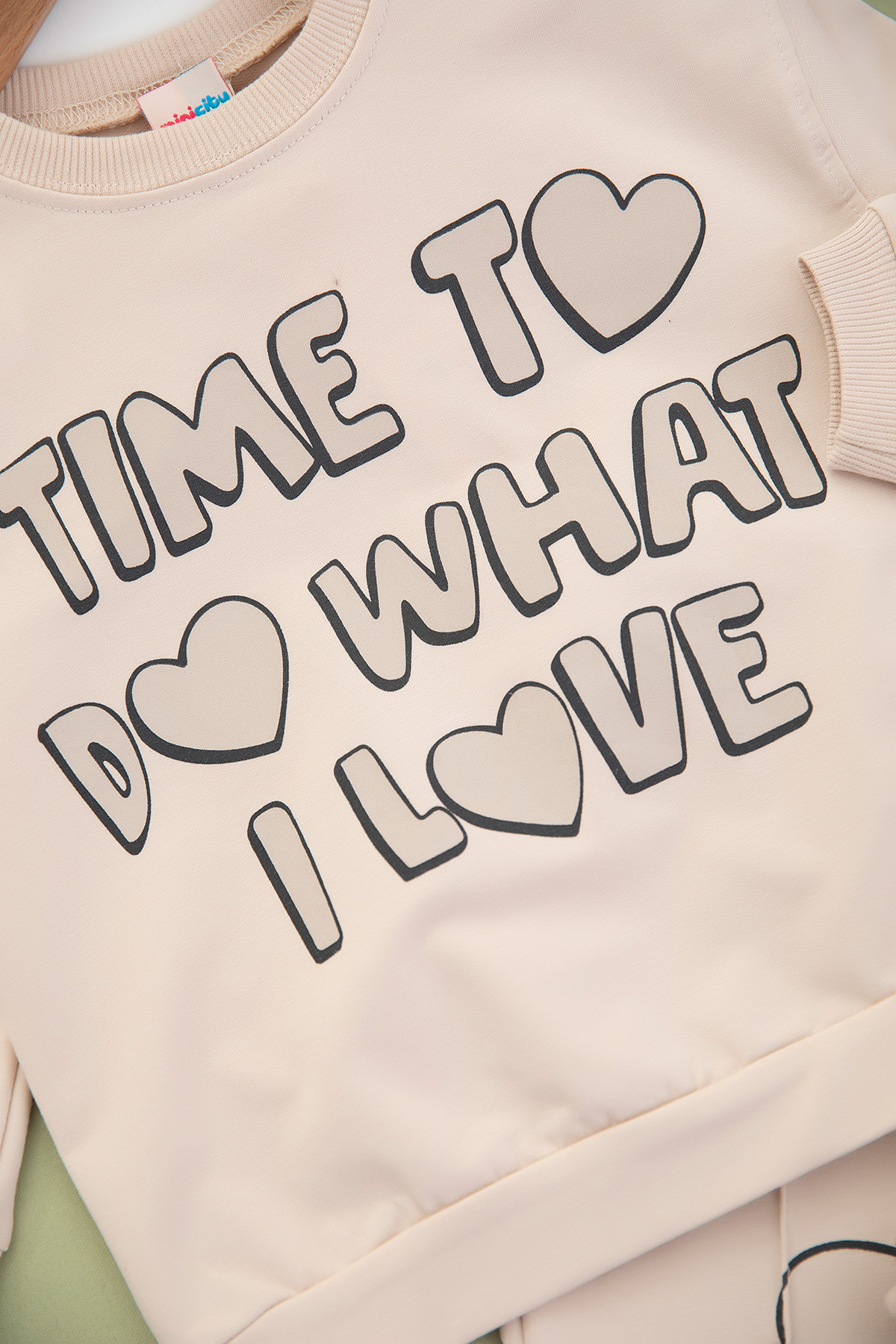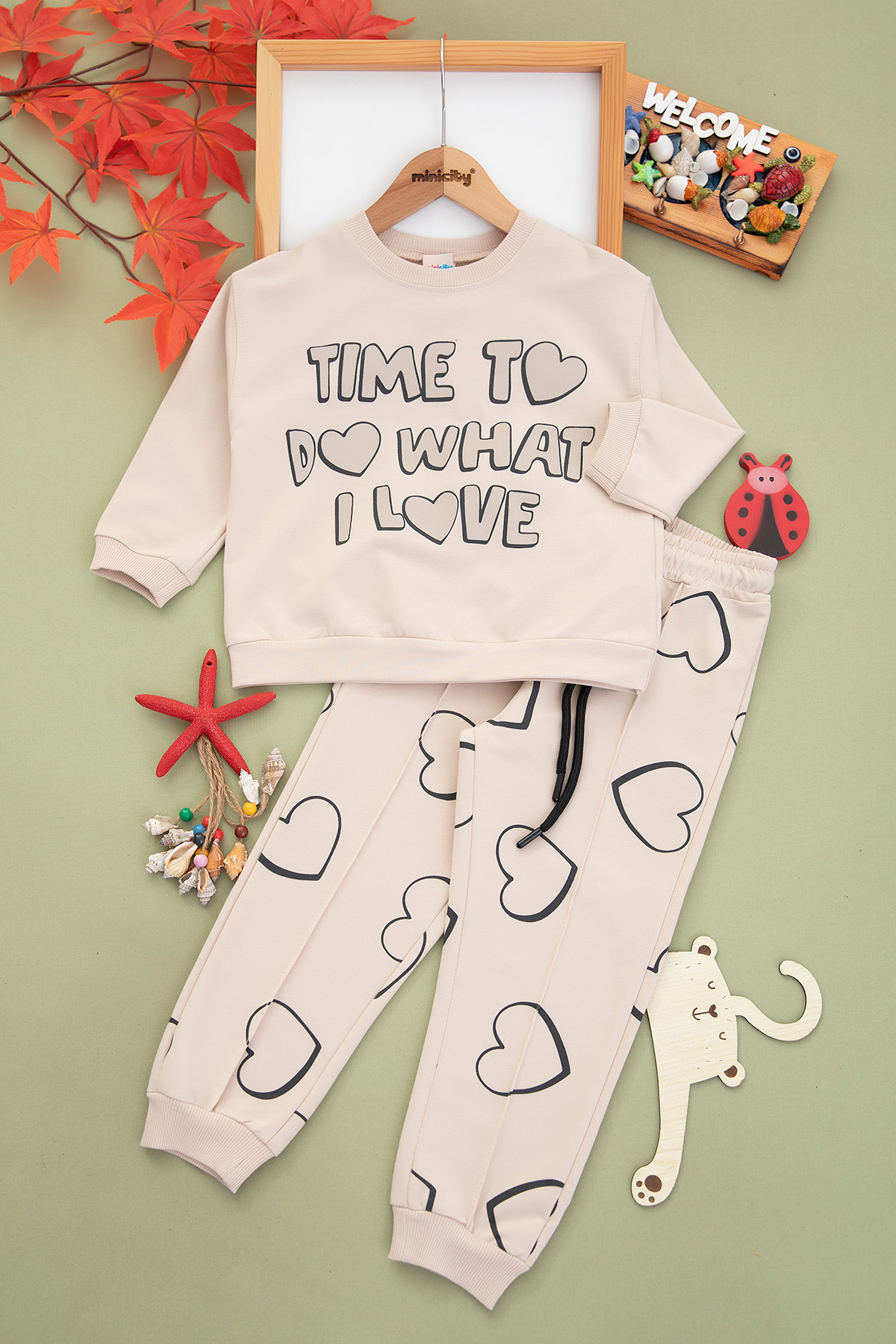Kız Çocuk Time To Baskılı Takım - 9067 (3-7 Yaş)