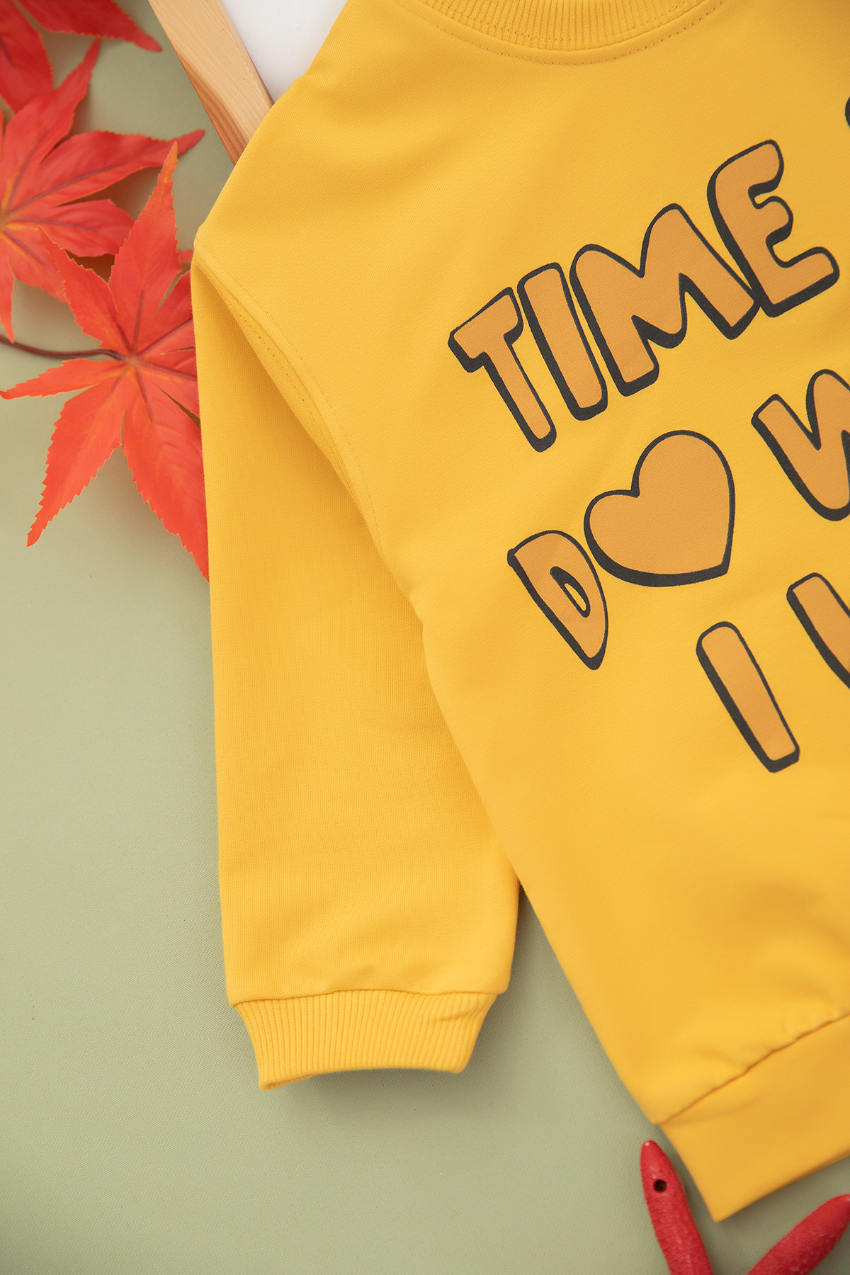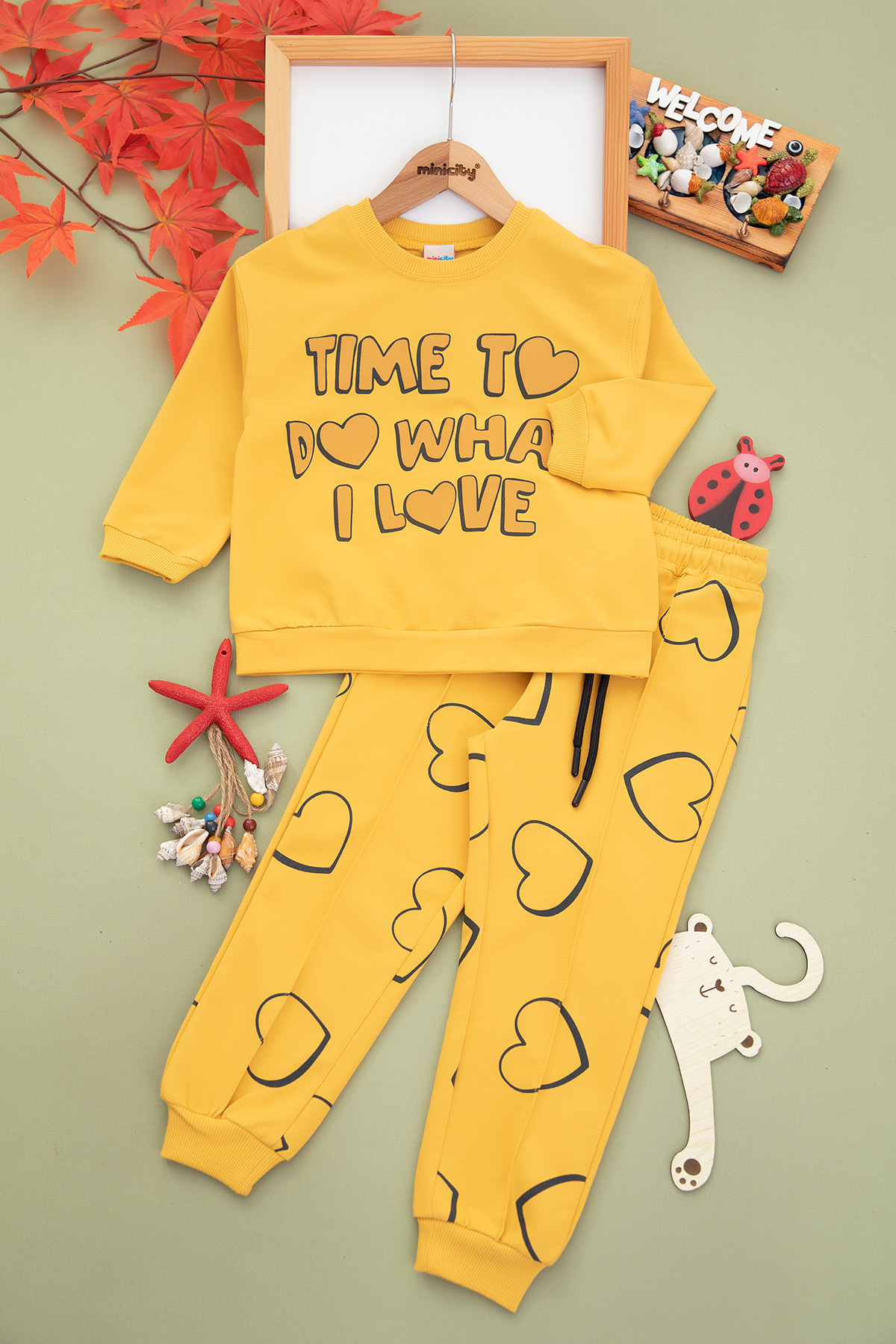 Kız Çocuk Time To Baskılı Takım - 9067 (3-7 Yaş)