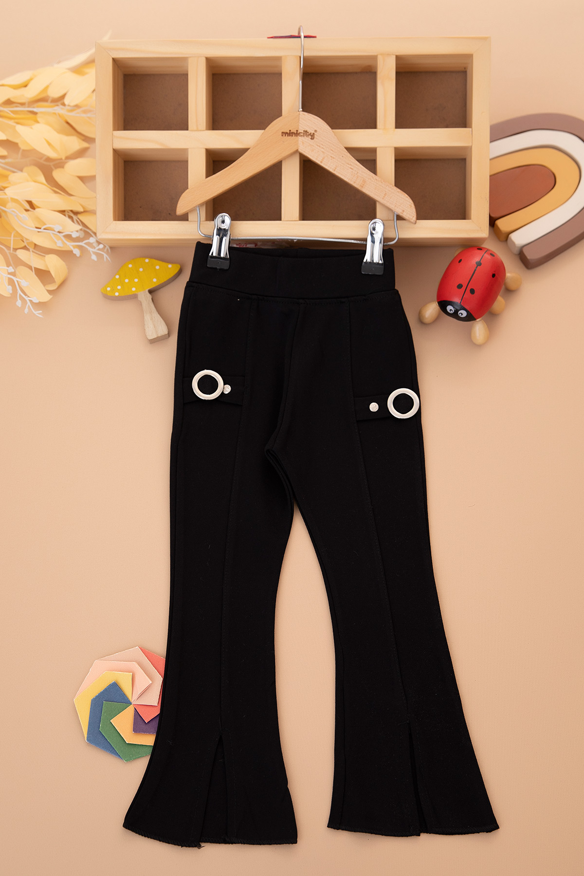 Kız Çocuk Tokalı Paça Yırtmaçlı Tayt - 1561 (3-7 Yaş)