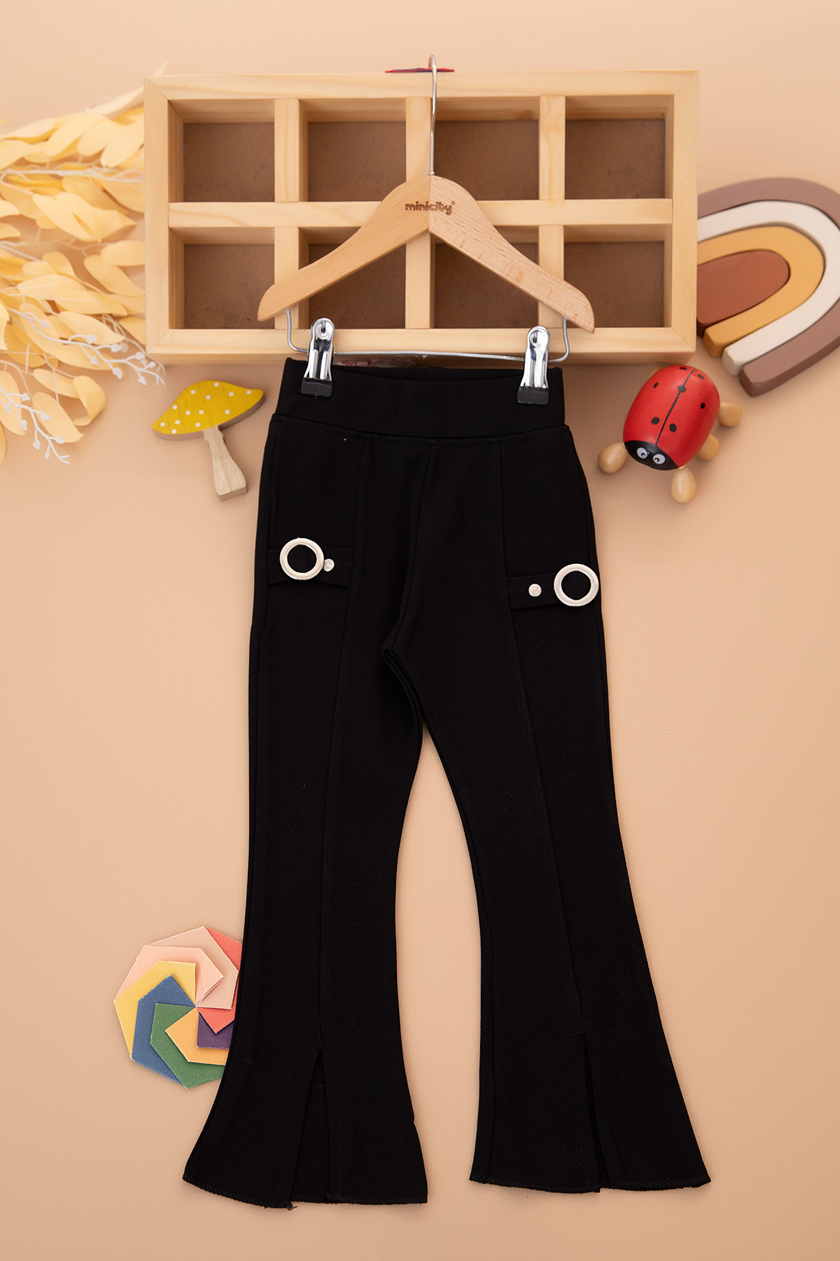 Kız Çocuk Tokalı Paça Yırtmaçlı Tayt - 1561 (8-12 Yaş)
