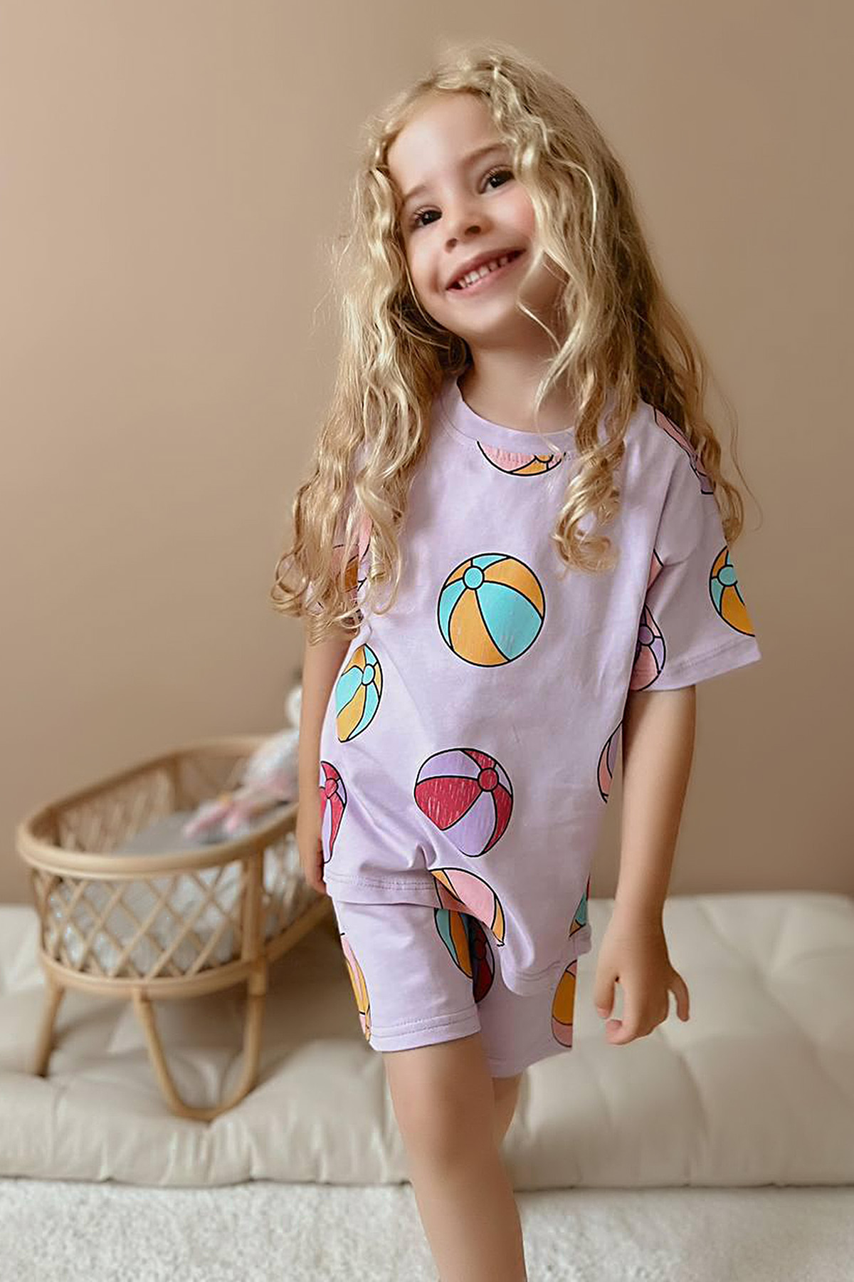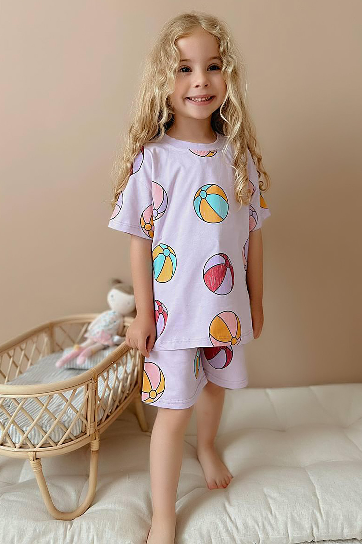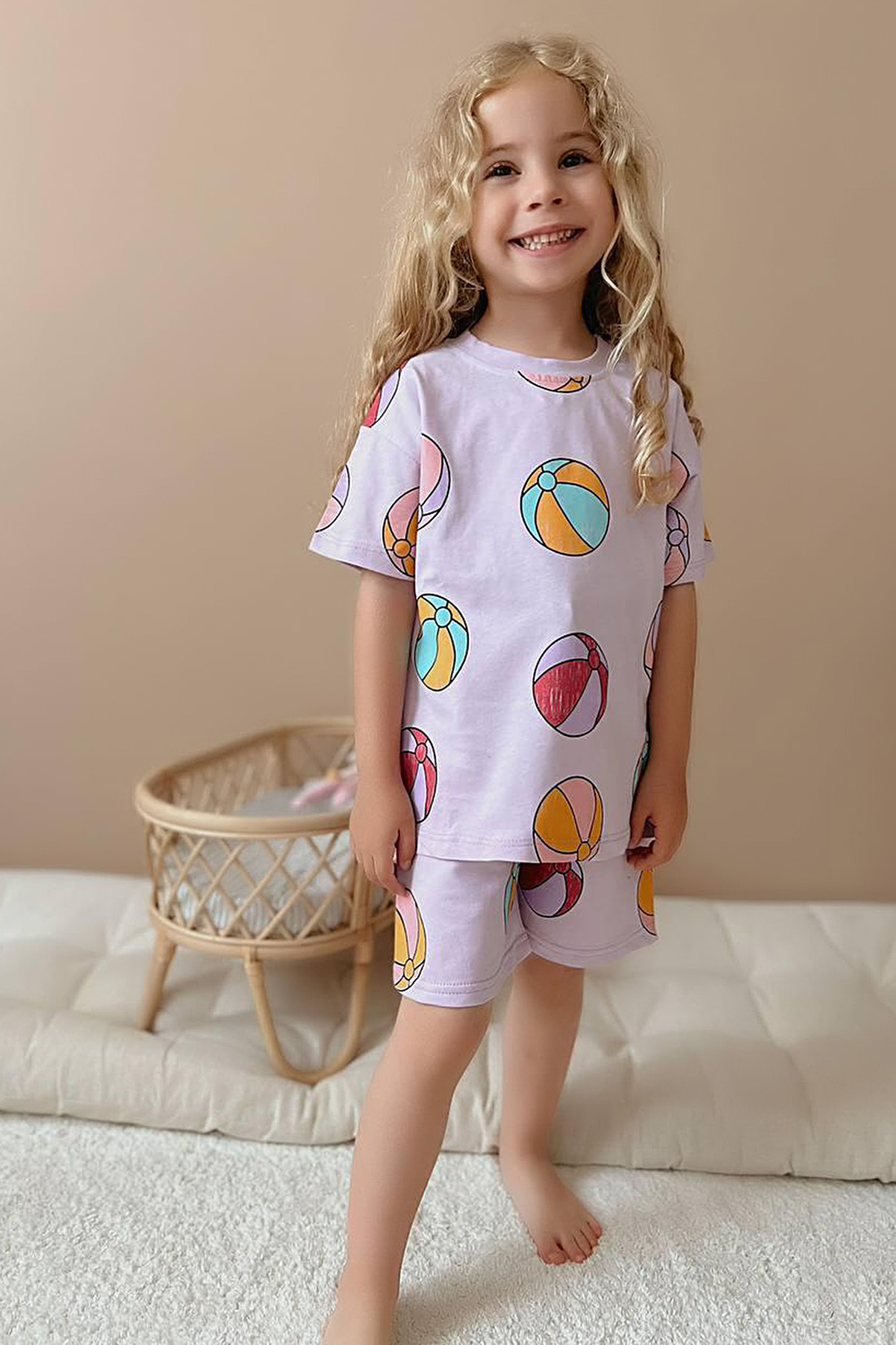 Kız Çocuk Top Baskılı Şortlu Takım - 2433 (3-10 Yaş)