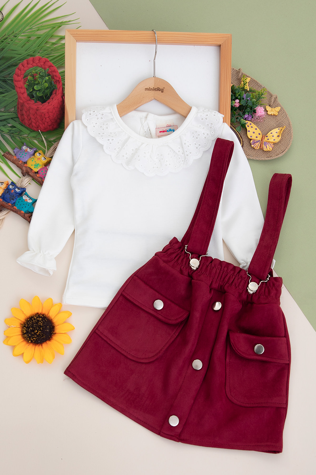 Kız Çocuk Torba Cepli Süet Salopet Takım - 1083 (3-7 Yaş)