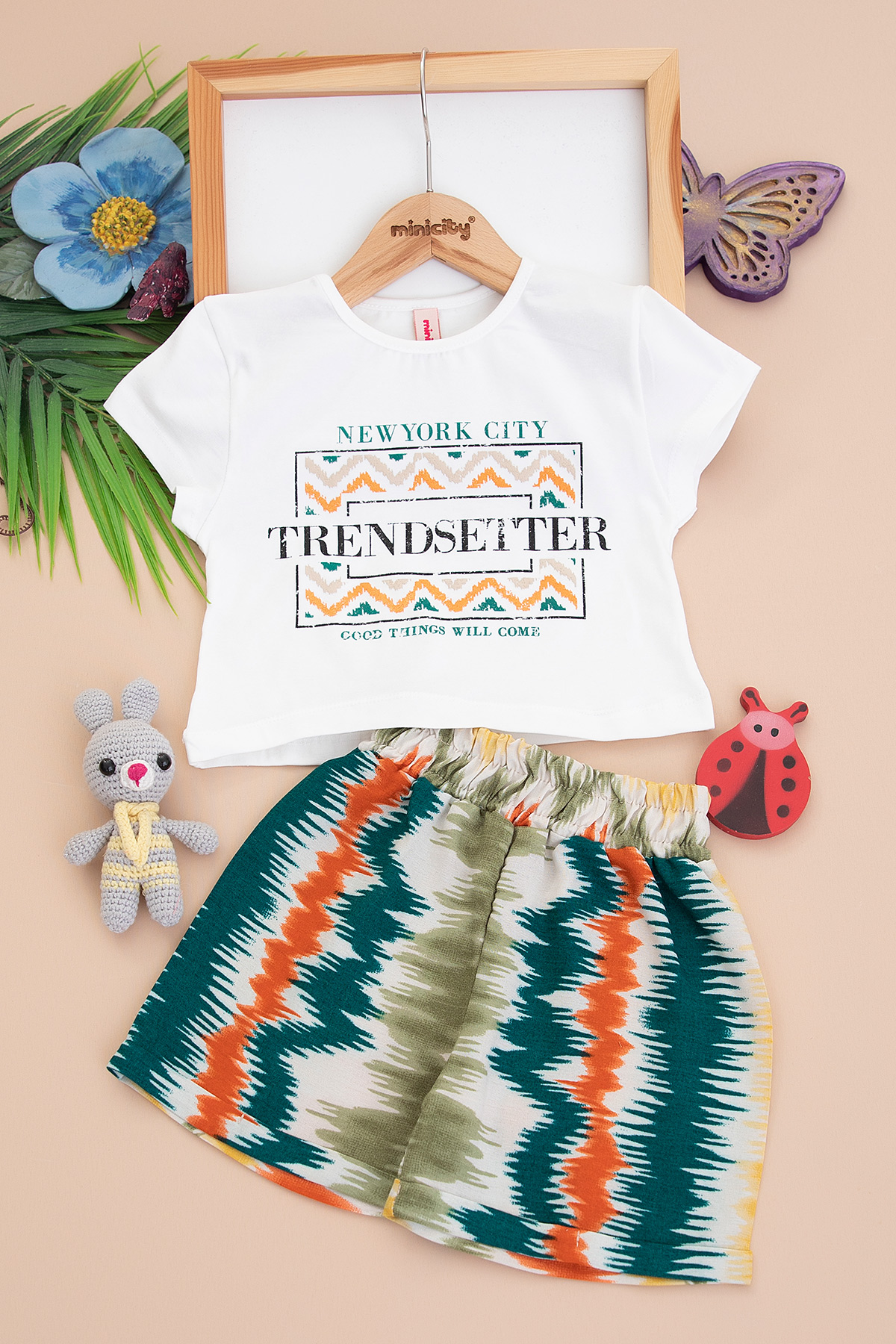 Kız Çocuk Trendsetter Baskılı Şortlu Takım - 3000 (2-5 Yaş)