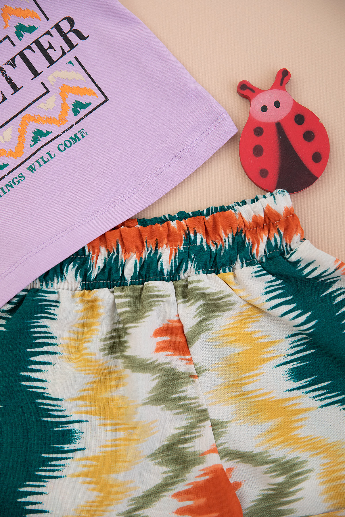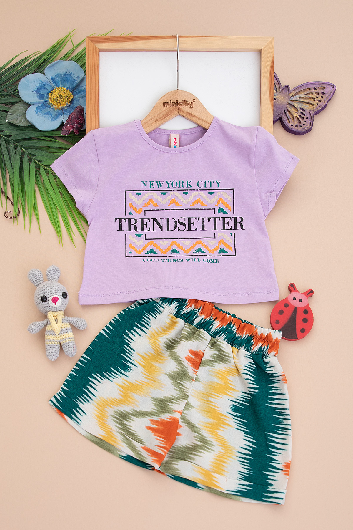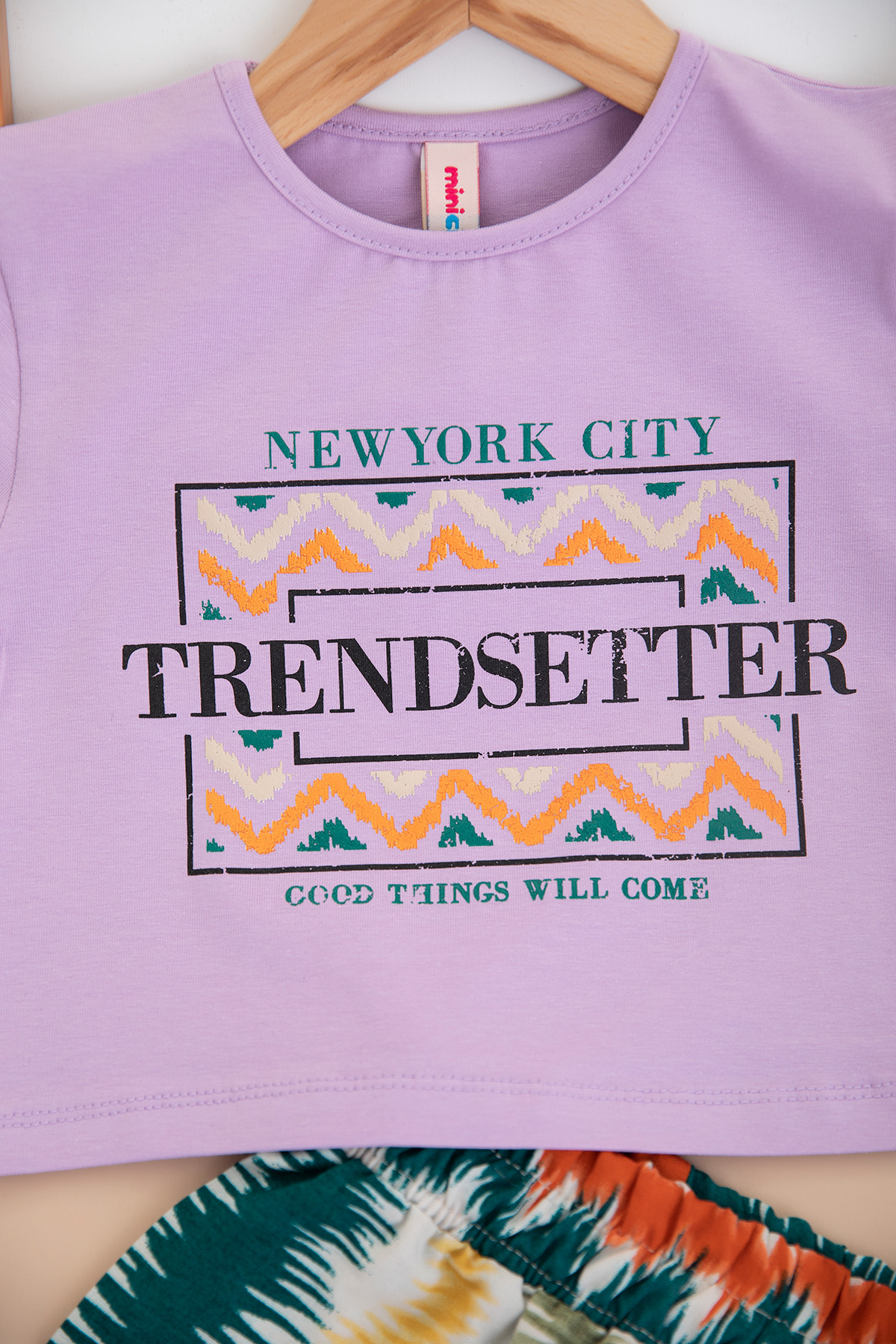 Kız Çocuk Trendsetter Baskılı Şortlu Takım - 3000 (2-5 Yaş)