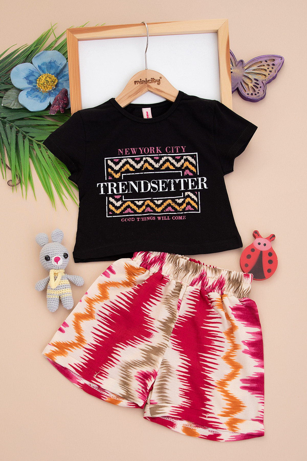 Kız Çocuk Trendsetter Baskılı Şortlu Takım - 3000 (2-5 Yaş)