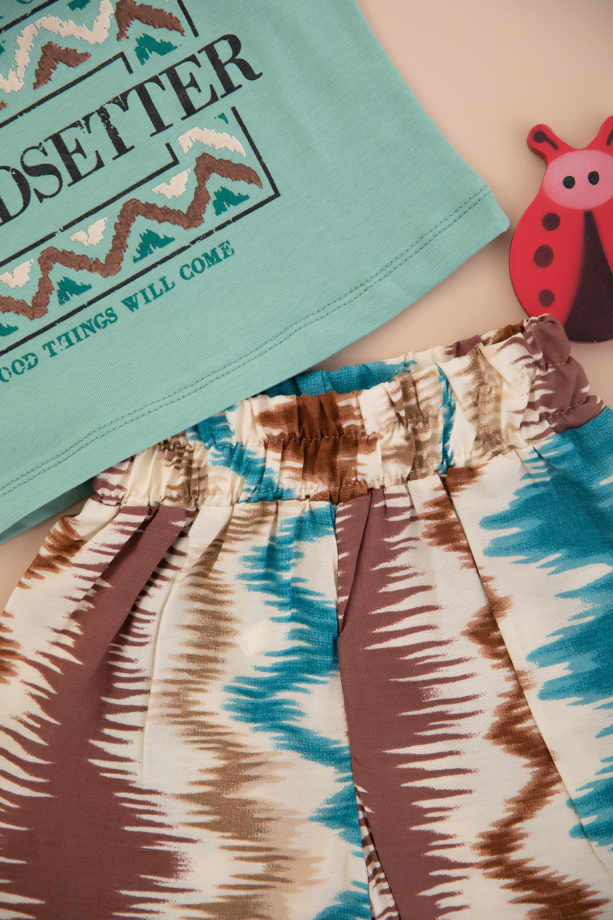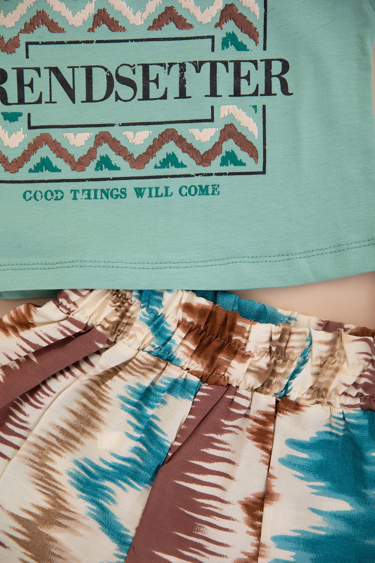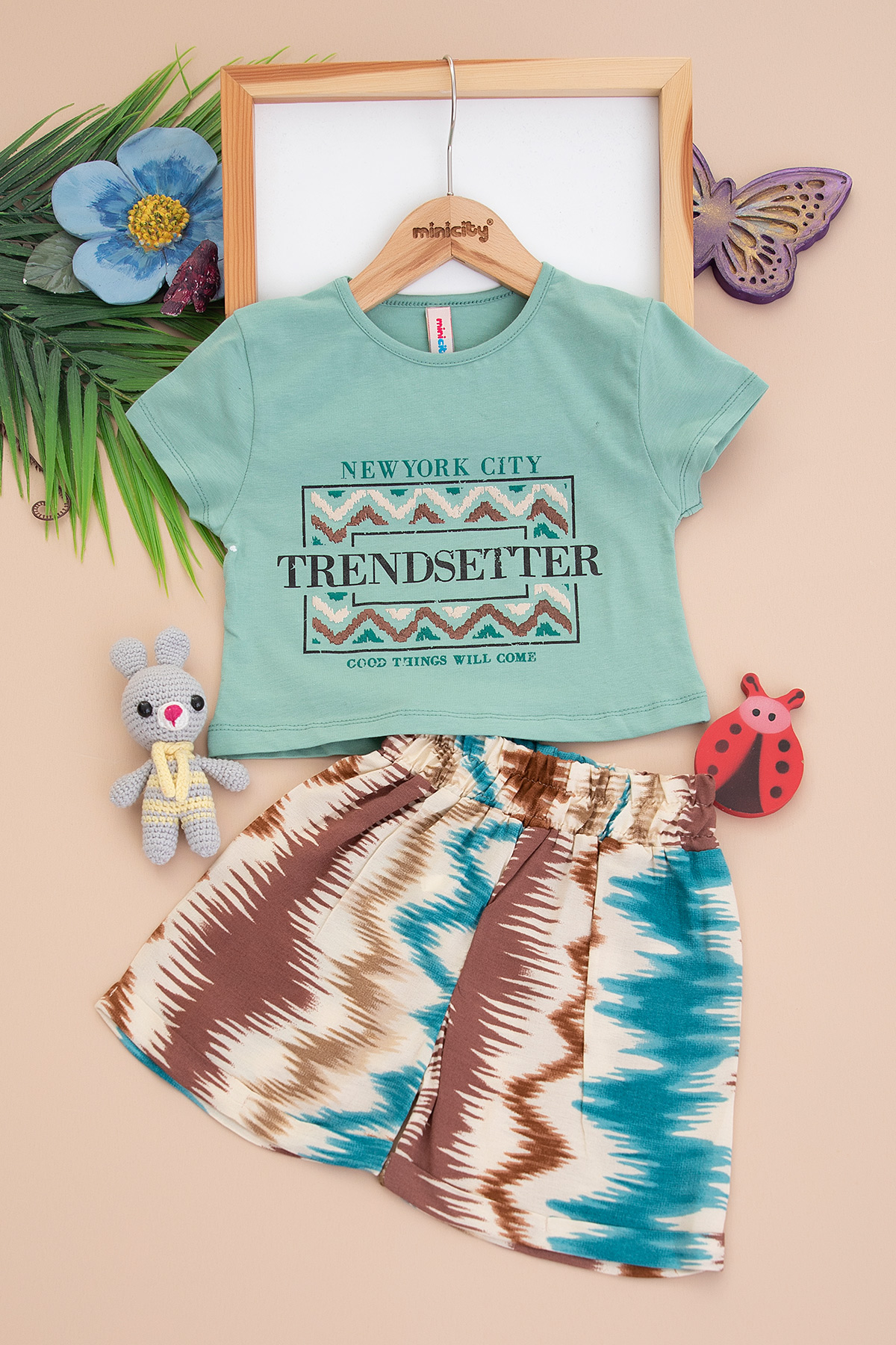 Kız Çocuk Trendsetter Baskılı Şortlu Takım - 3001 (5-8 Yaş)
