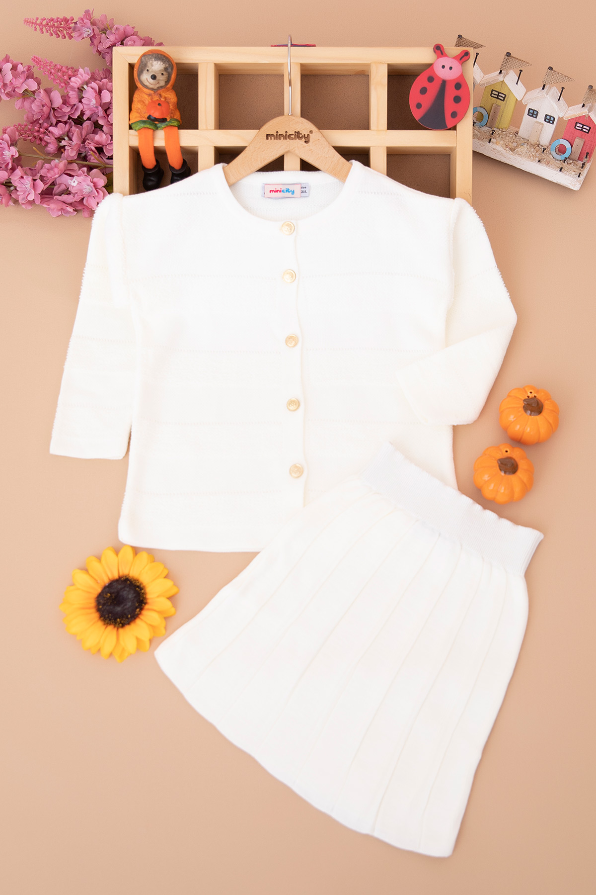 Kız Çocuk Triko Hırka Pileli Etek Takım - J-2001 (3-10 Yaş)