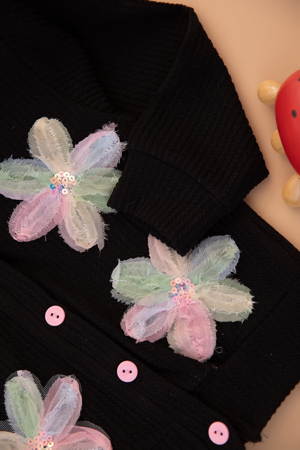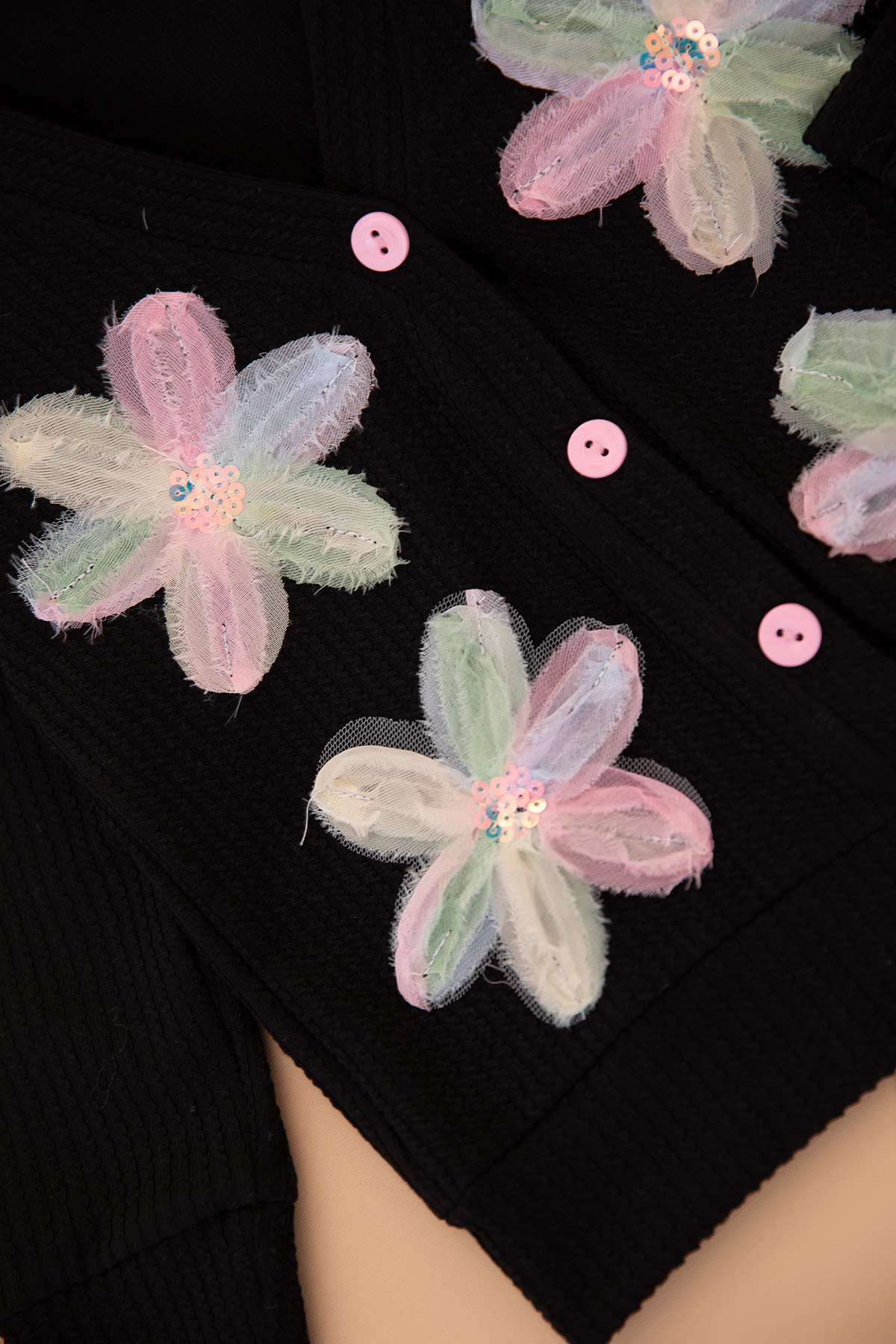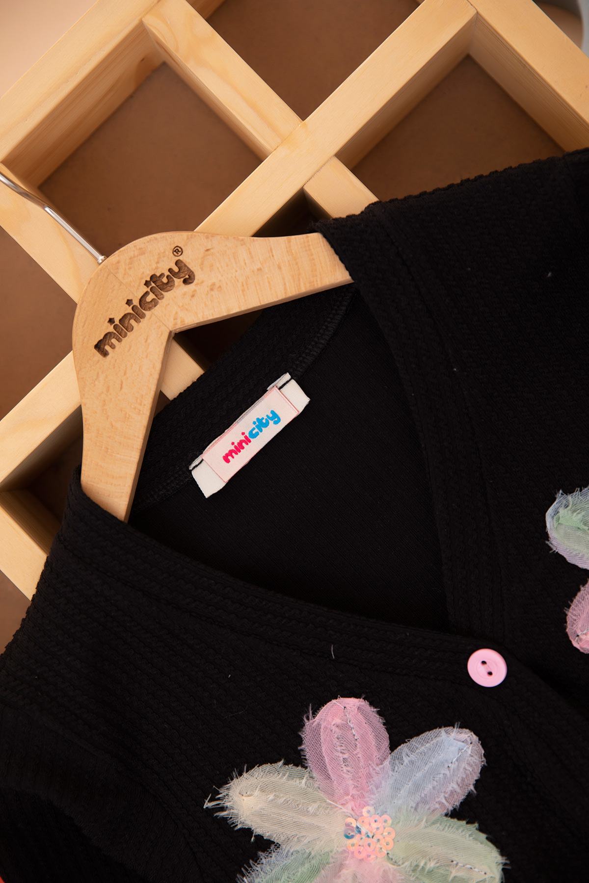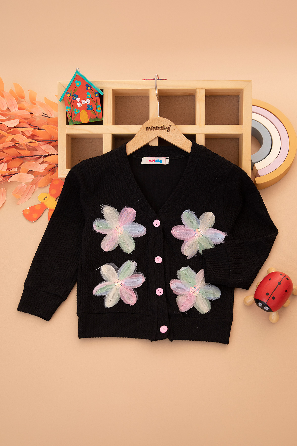Kız Çocuk Tül Çiçekli Düğmeli Hırka - 525141 (3-7 Yaş)