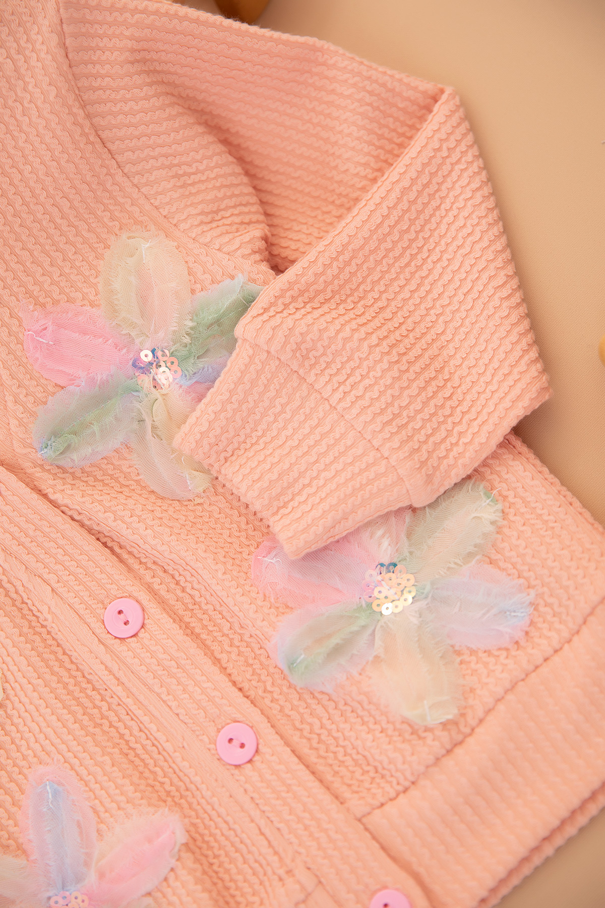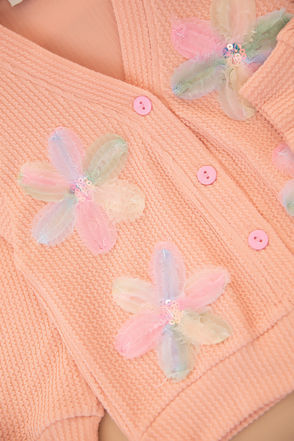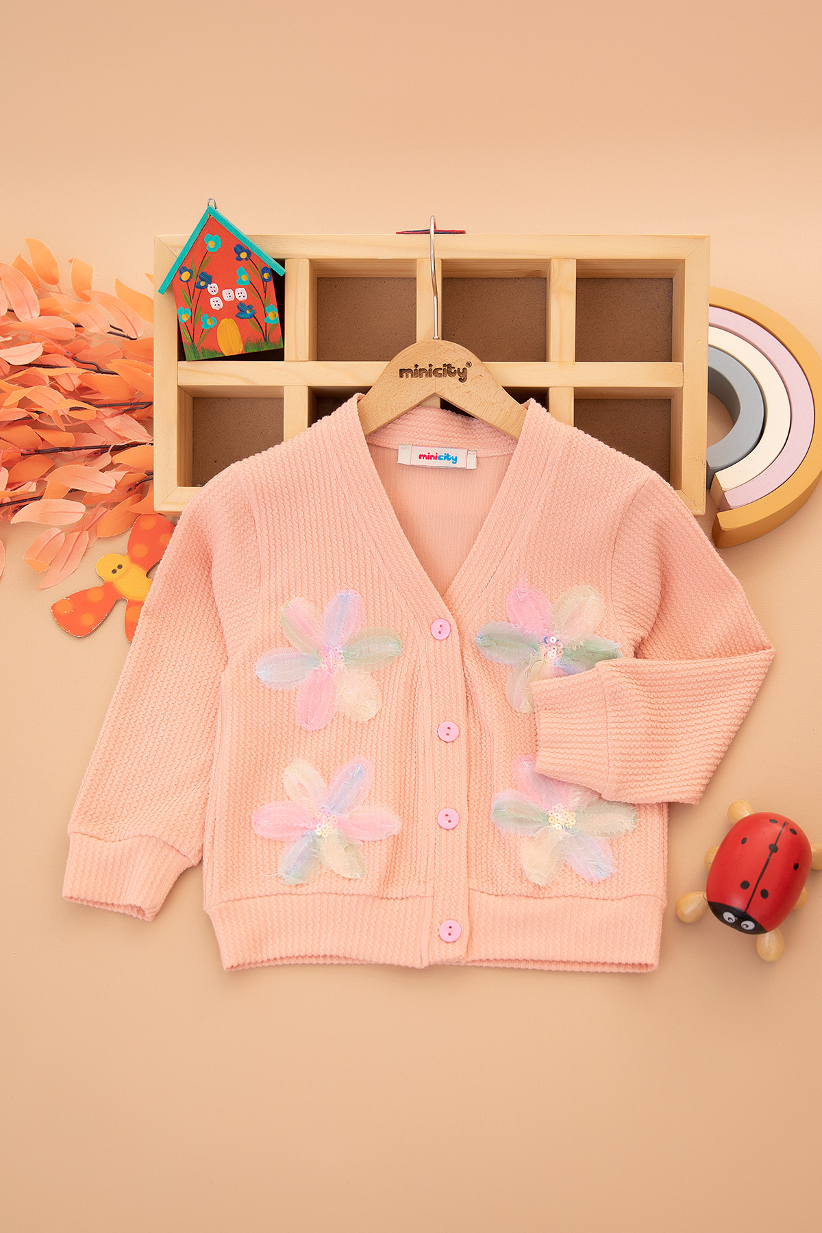 Kız Çocuk Tül Çiçekli Düğmeli Hırka - 525141 (3-7 Yaş)