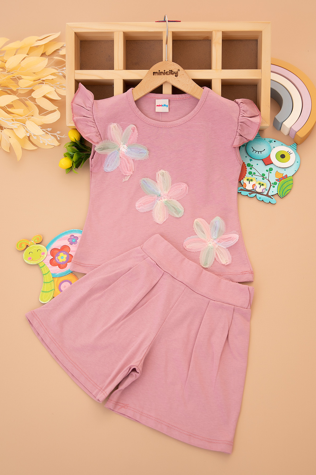 Kız Çocuk Tül Çiçekli Şortlu Takım - 12602 (4-8 Yaş)