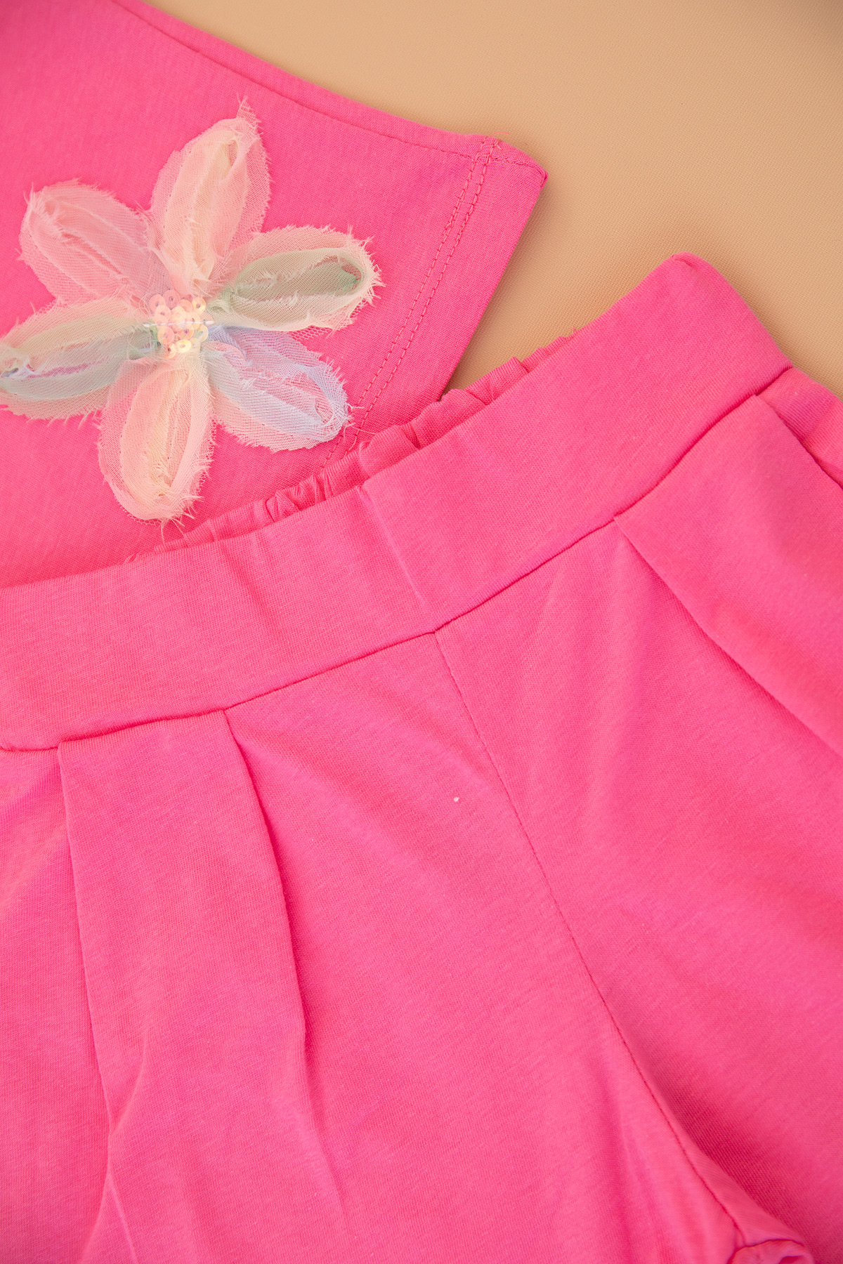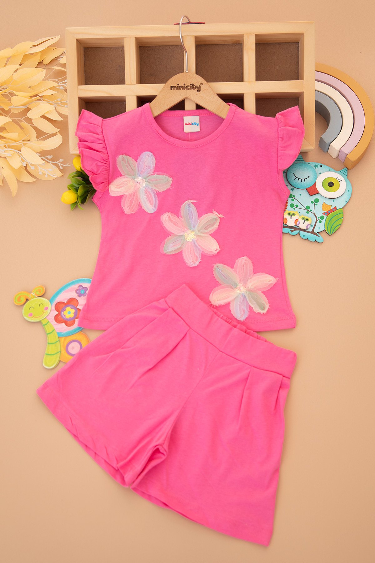 Kız Çocuk Tül Çiçekli Şortlu Takım - 12602 (4-8 Yaş)