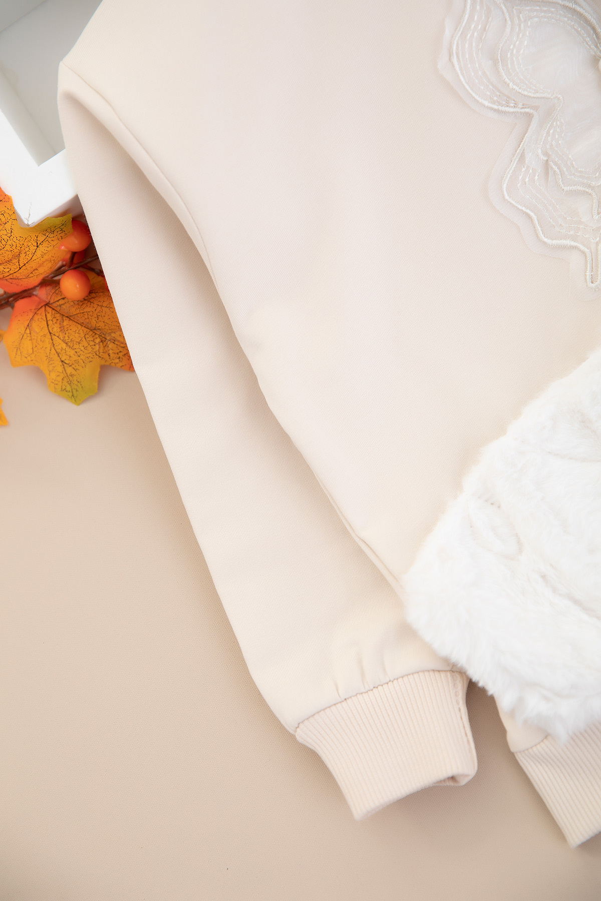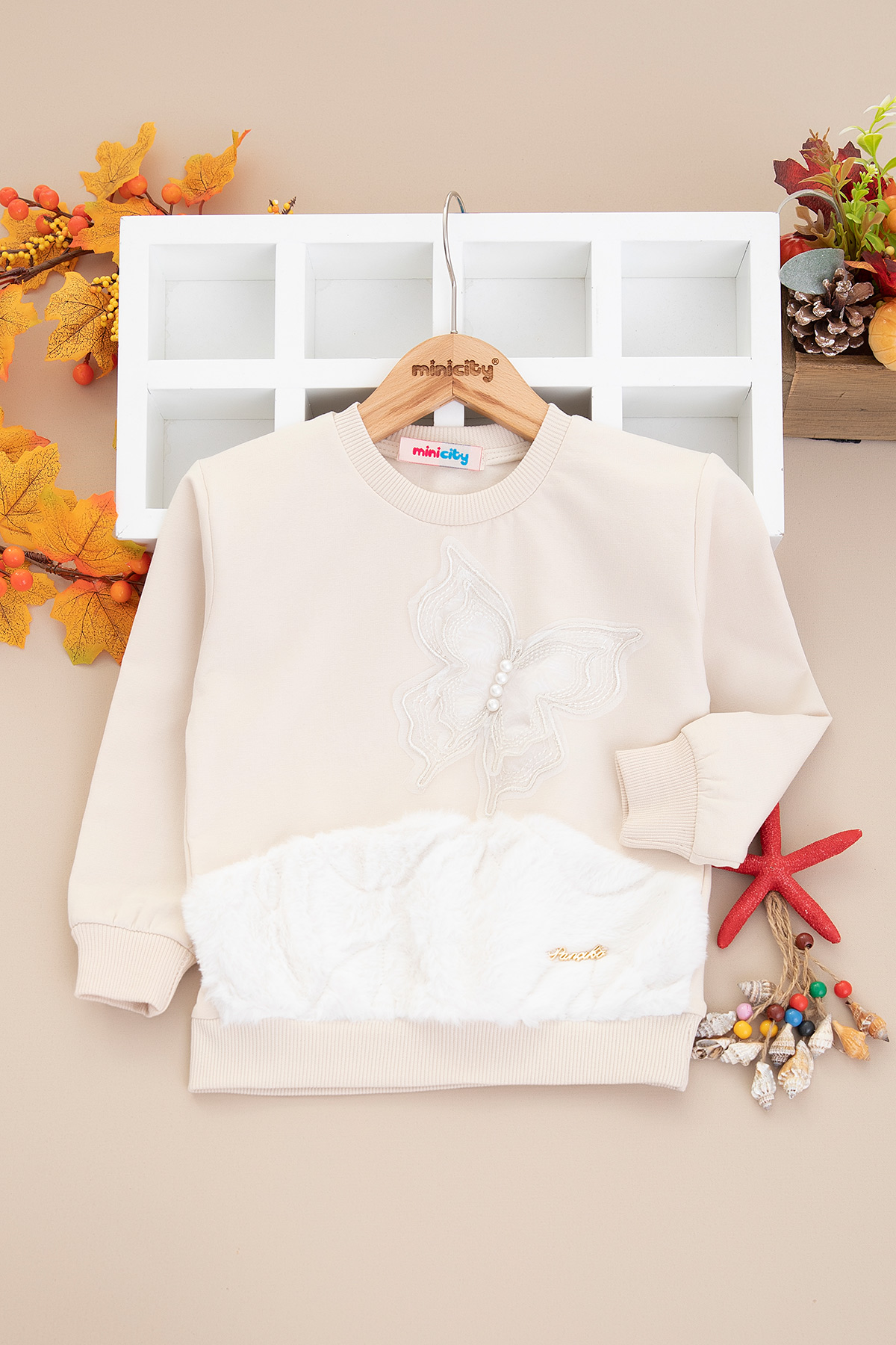 Kız Çocuk Tül Kelebek Peluşlu Sweat - 7623 (9-12 Yaş)