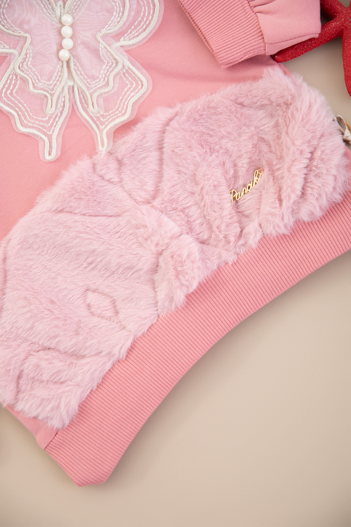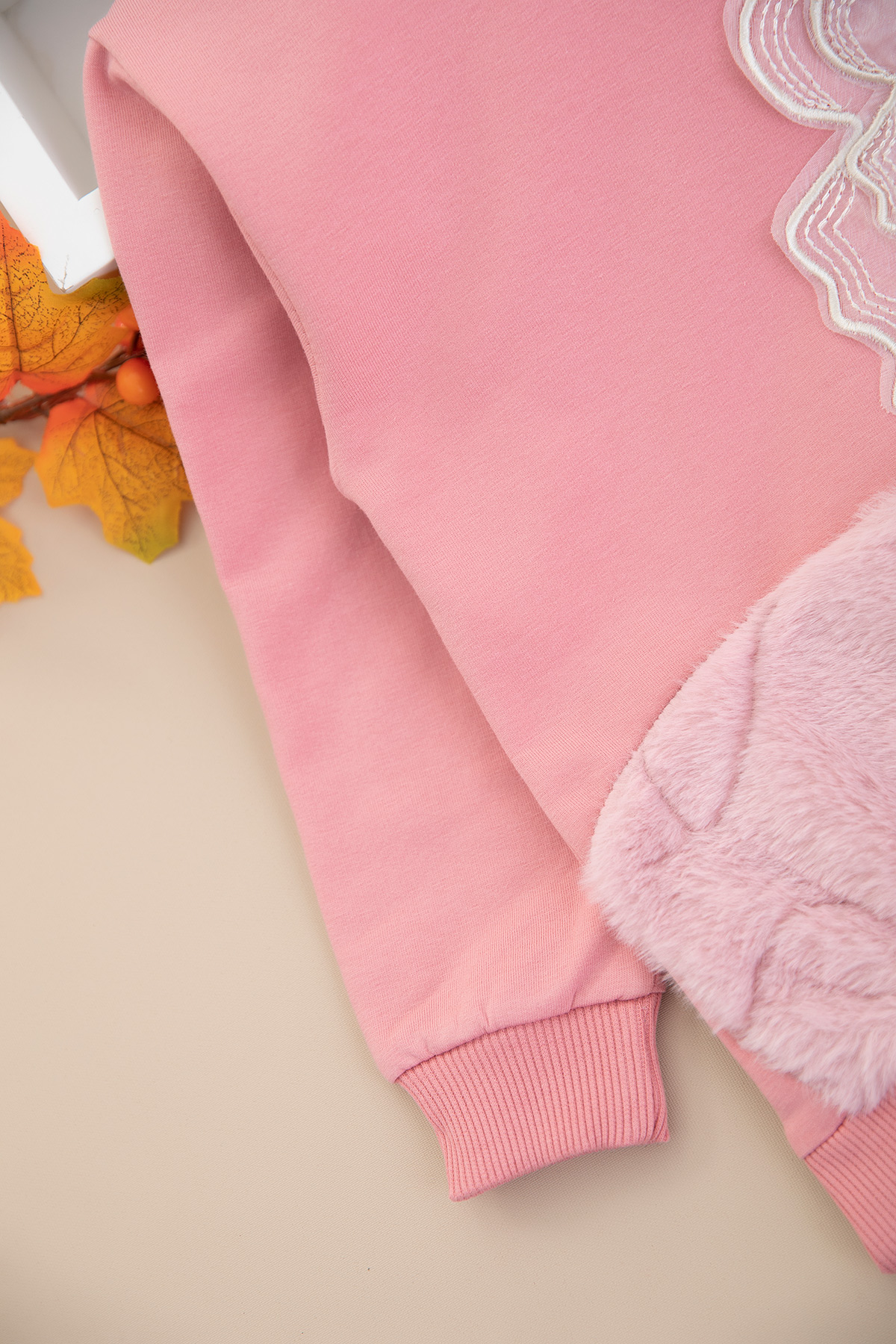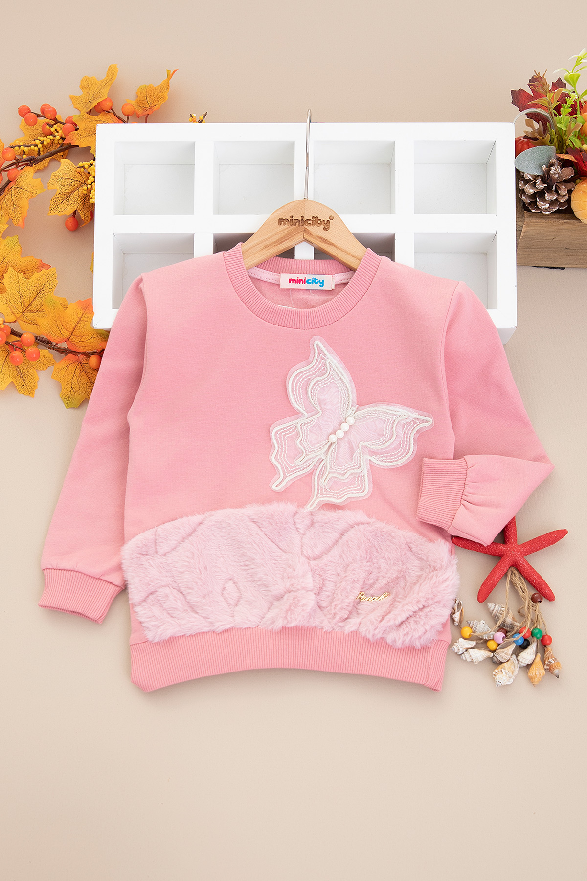 Kız Çocuk Tül Kelebek Peluşlu Sweat - 7623 (9-12 Yaş)