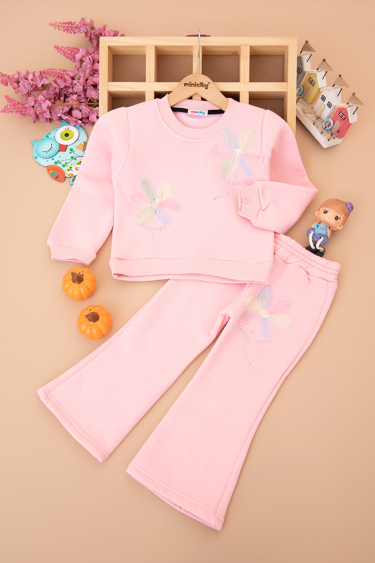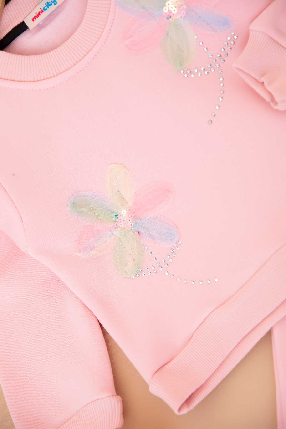 Kız Çocuk Tüllü Çiçek Nakışlı Üçip Takım (2-10 Yaş)