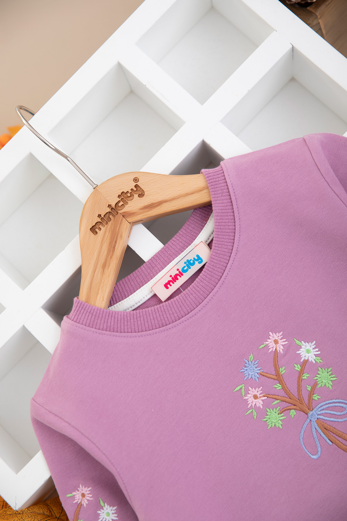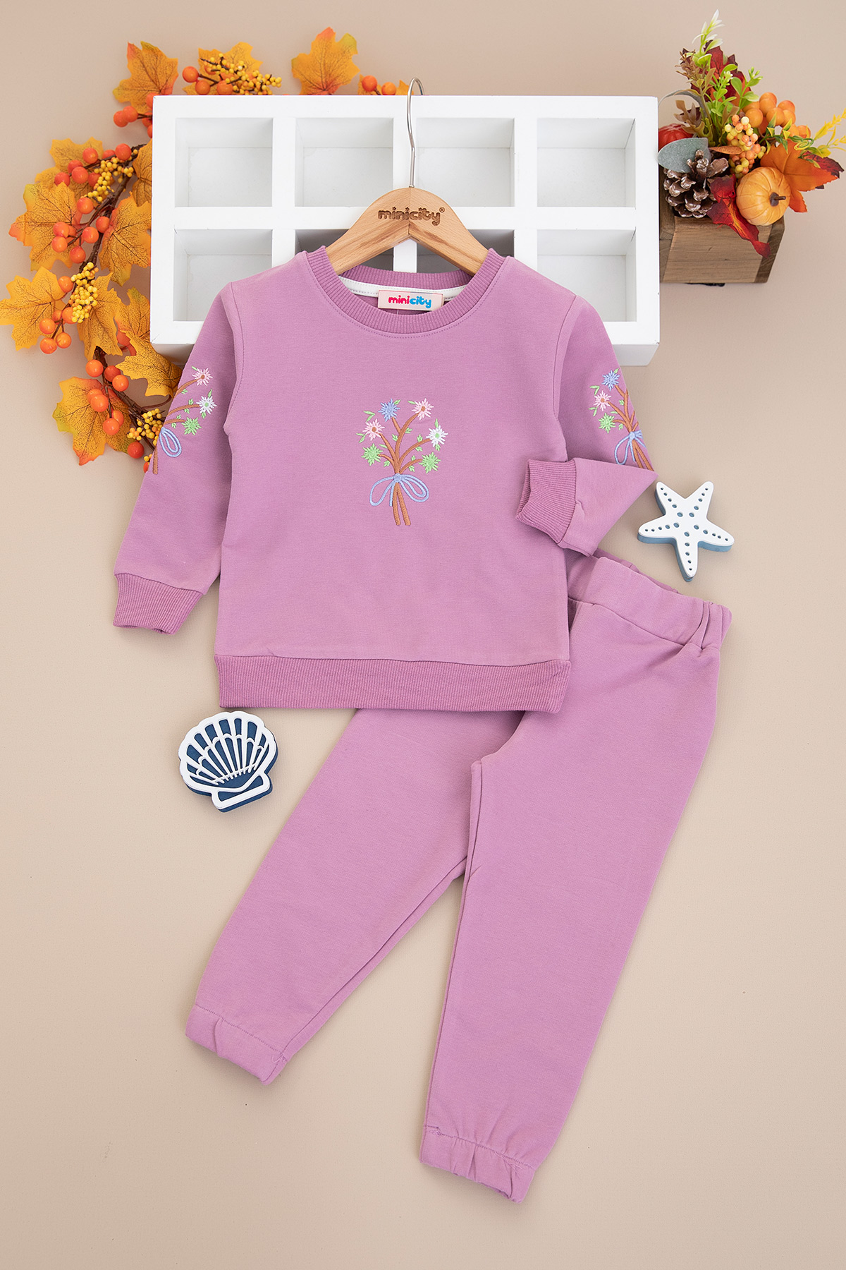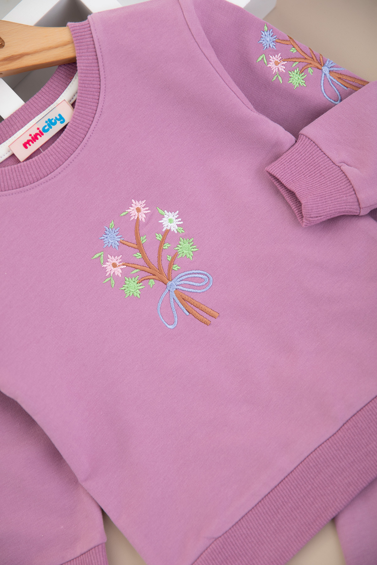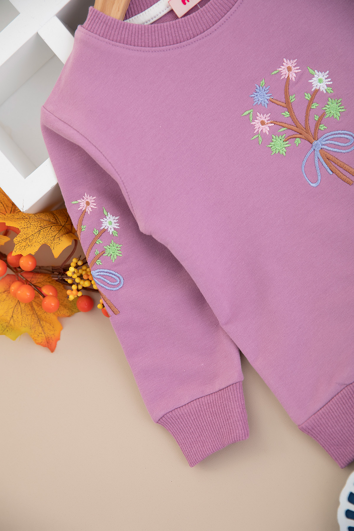 Kız Çocuk Üç Buket Nakışlı Takım - 25072 (1-4 Yaş)