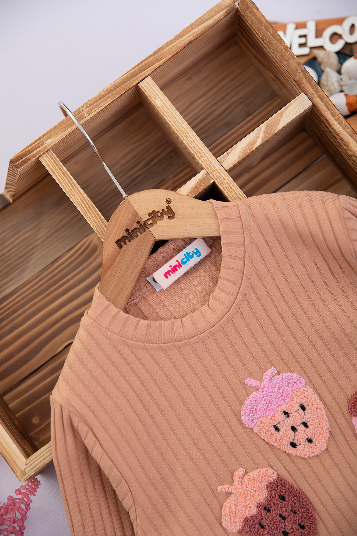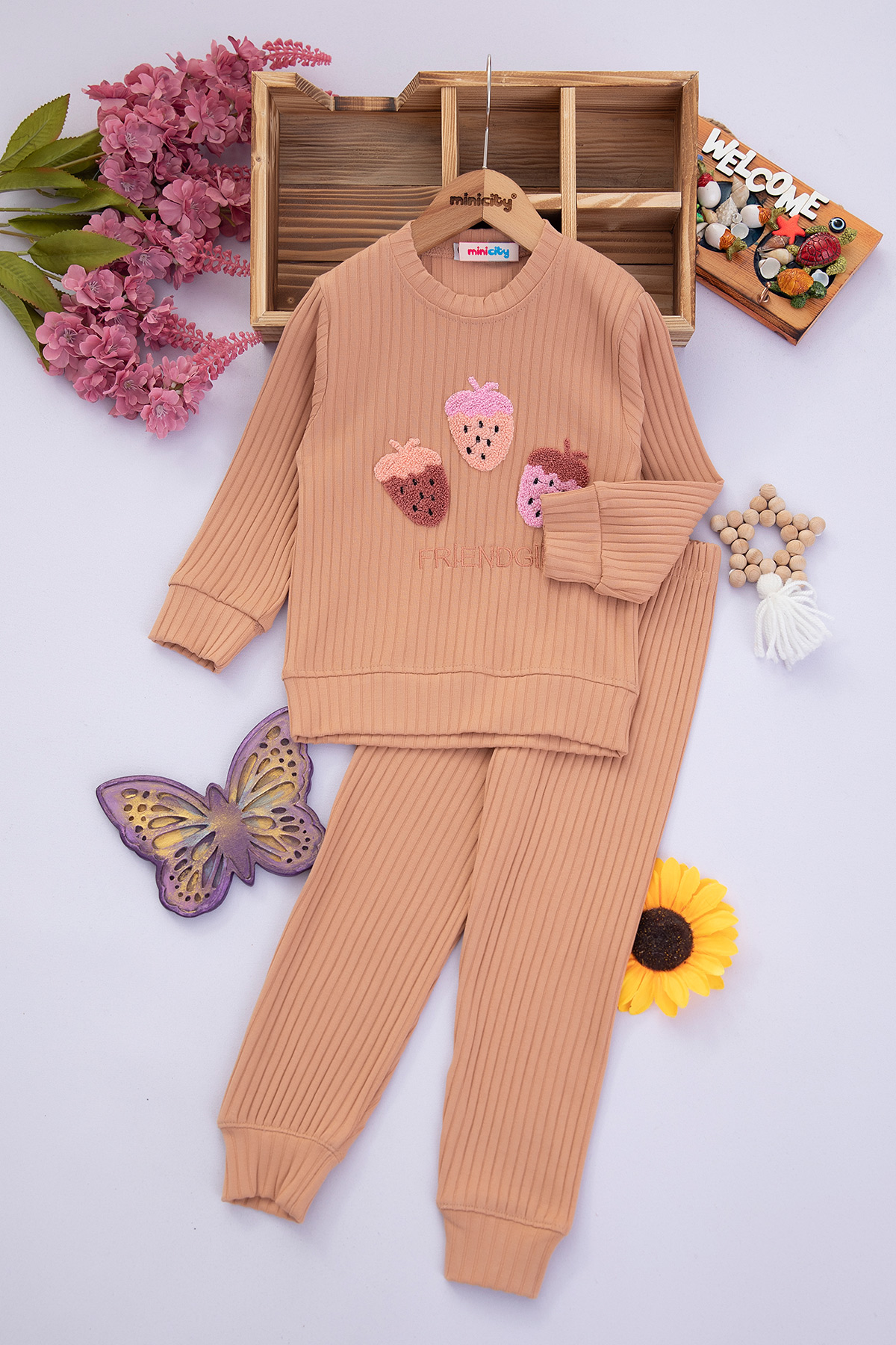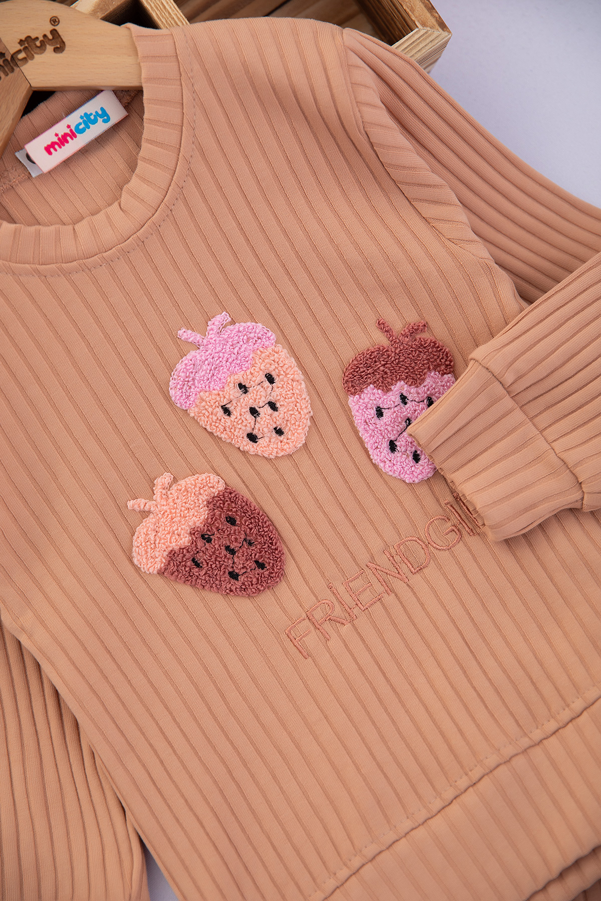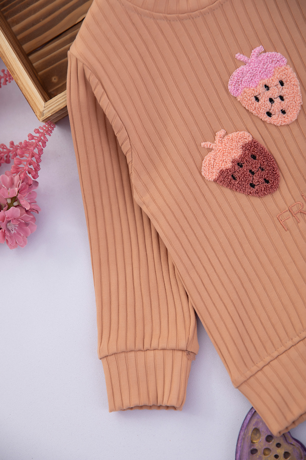 Kız Çocuk Üç Çilek Nakışlı Fitilli Takım - 200035 (3-7 Yaş)