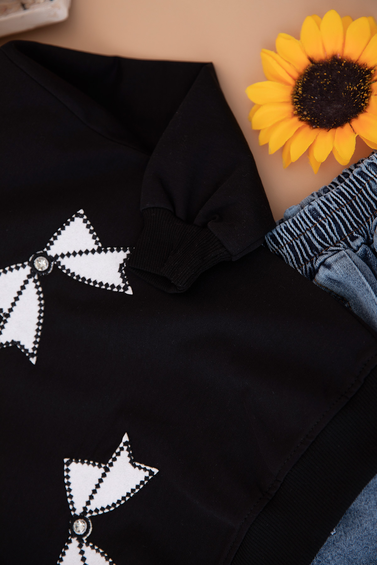Kız Çocuk Üç Fiyonk Nakışlı Pantolon Takım - 2666 (6-10 Yaş)