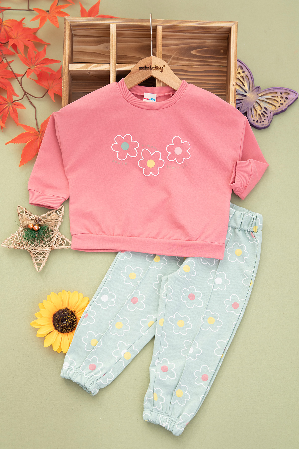 Kız Çocuk Üç Papatya Baskılı Takım - 9117 (1-4 Yaş)