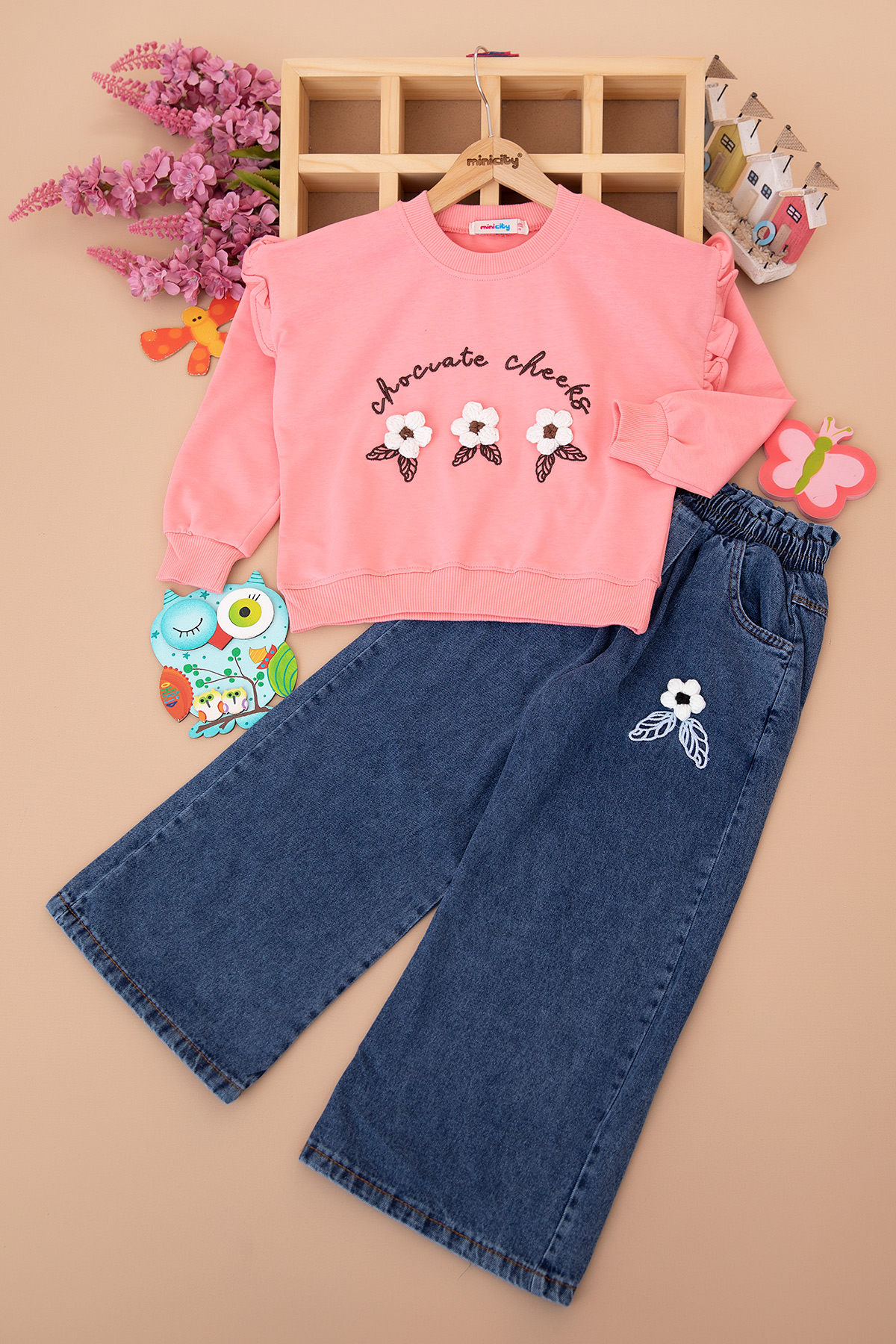 Kız Çocuk Üç Papatya Pantolon Takım - 2639 (6-10 Yaş)