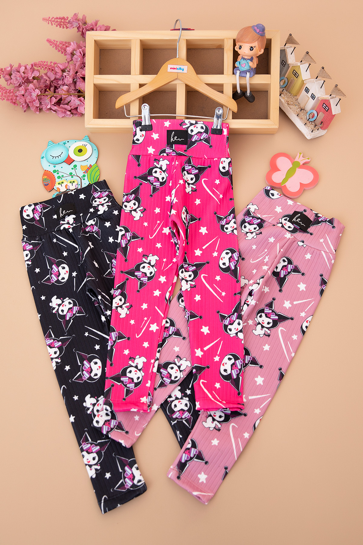 Kız Çocuk Üçlü Raporlu Baskılı Şardonlu Tayt