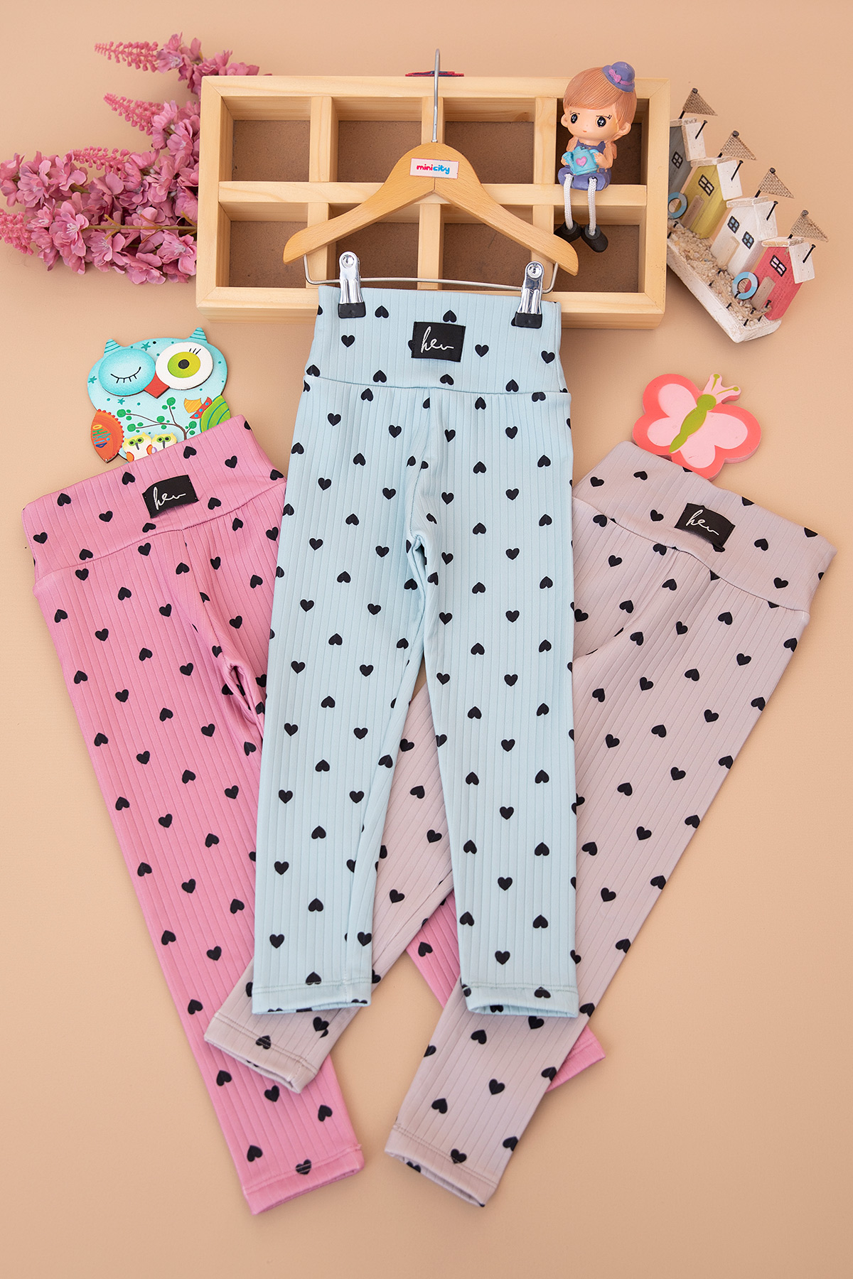 Kız Çocuk Üçlü Raporlu Baskılı Şardonlu Tayt