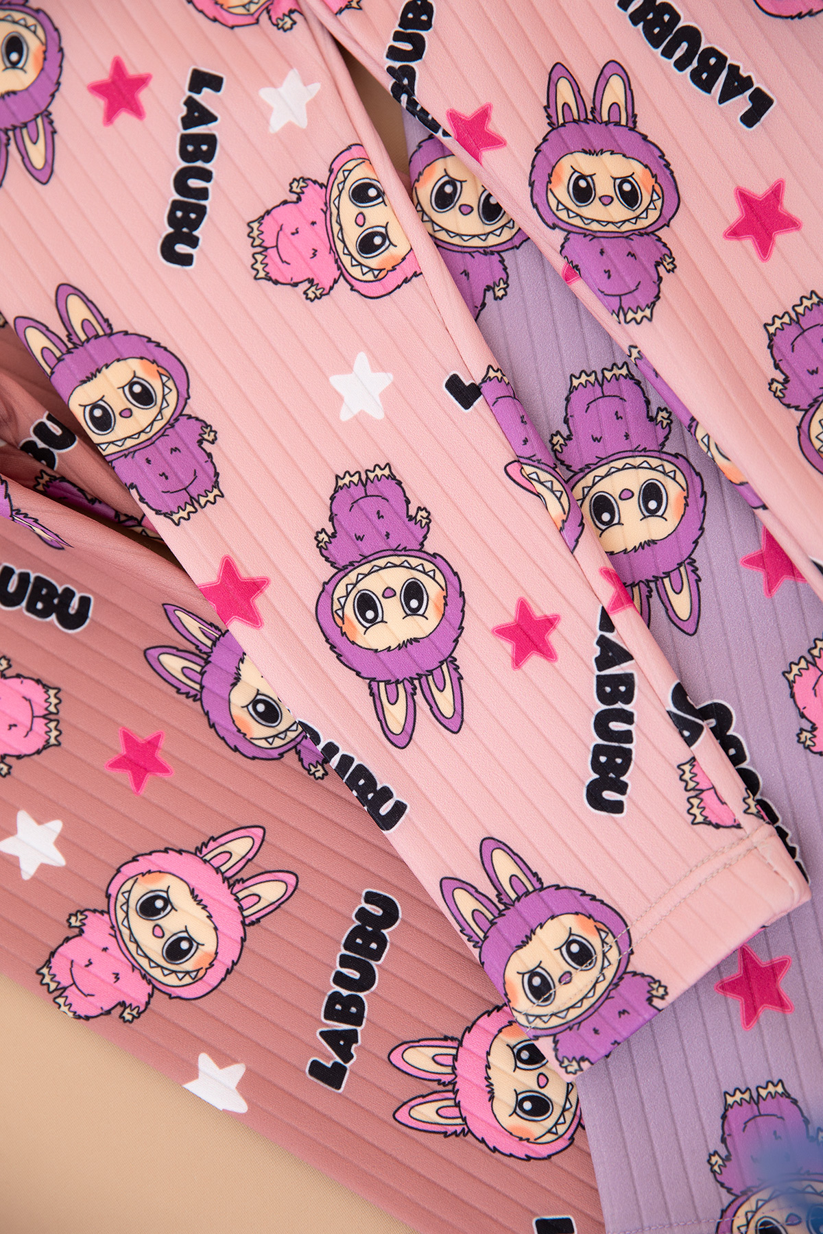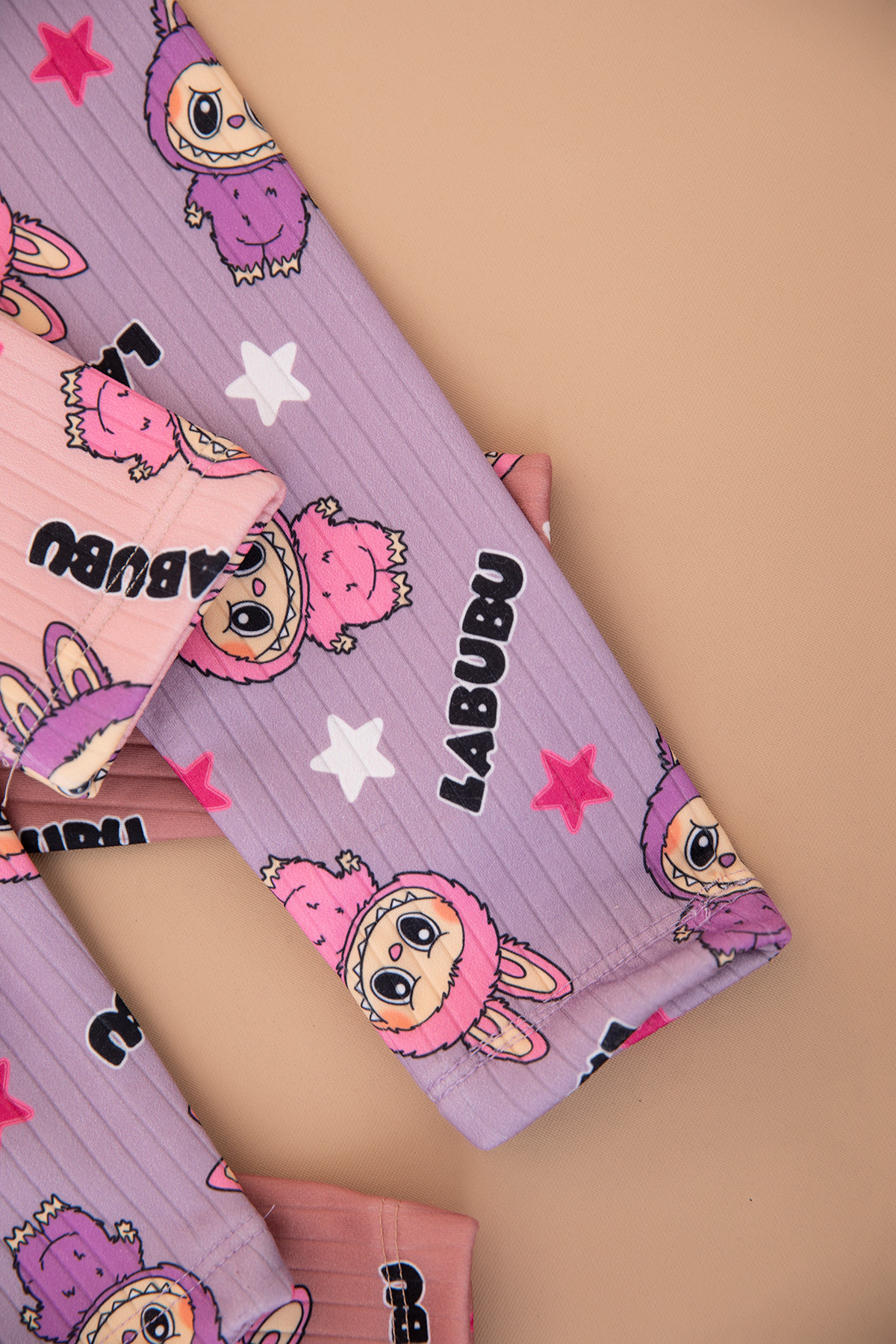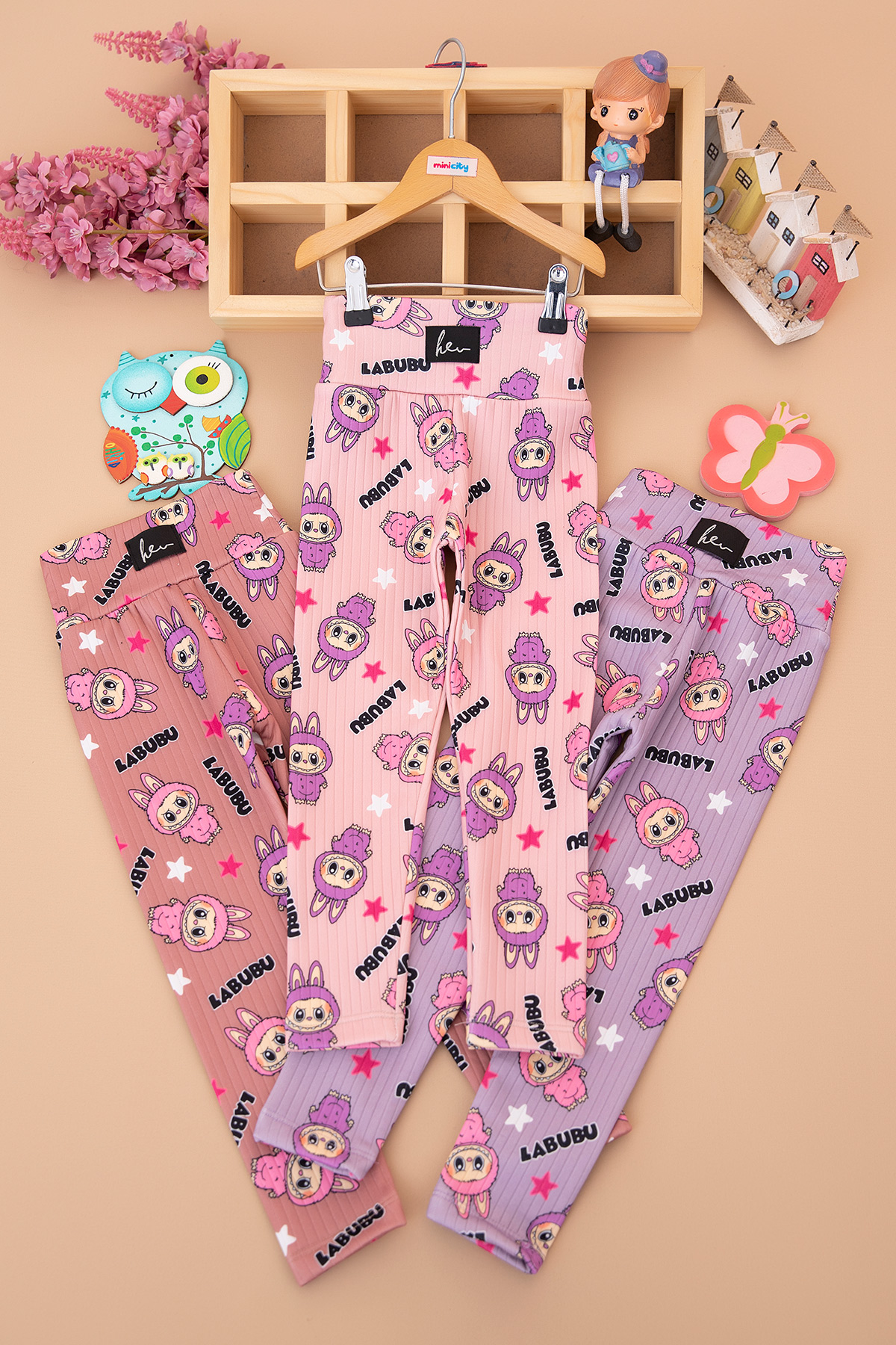 Kız Çocuk Üçlü Raporlu Baskılı Şardonlu Tayt