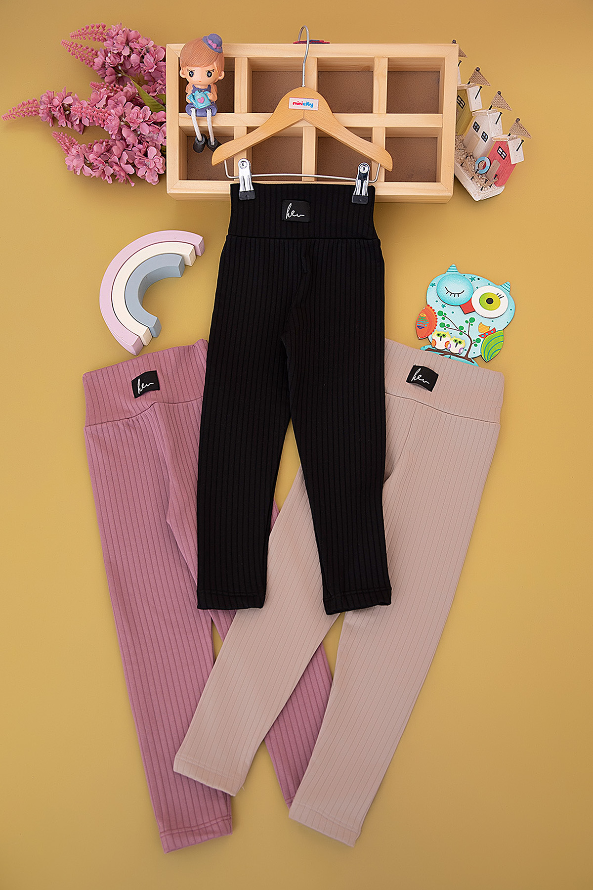 Kız Çocuk Üçlü Raporlu Baskılı Şardonlu Tayt