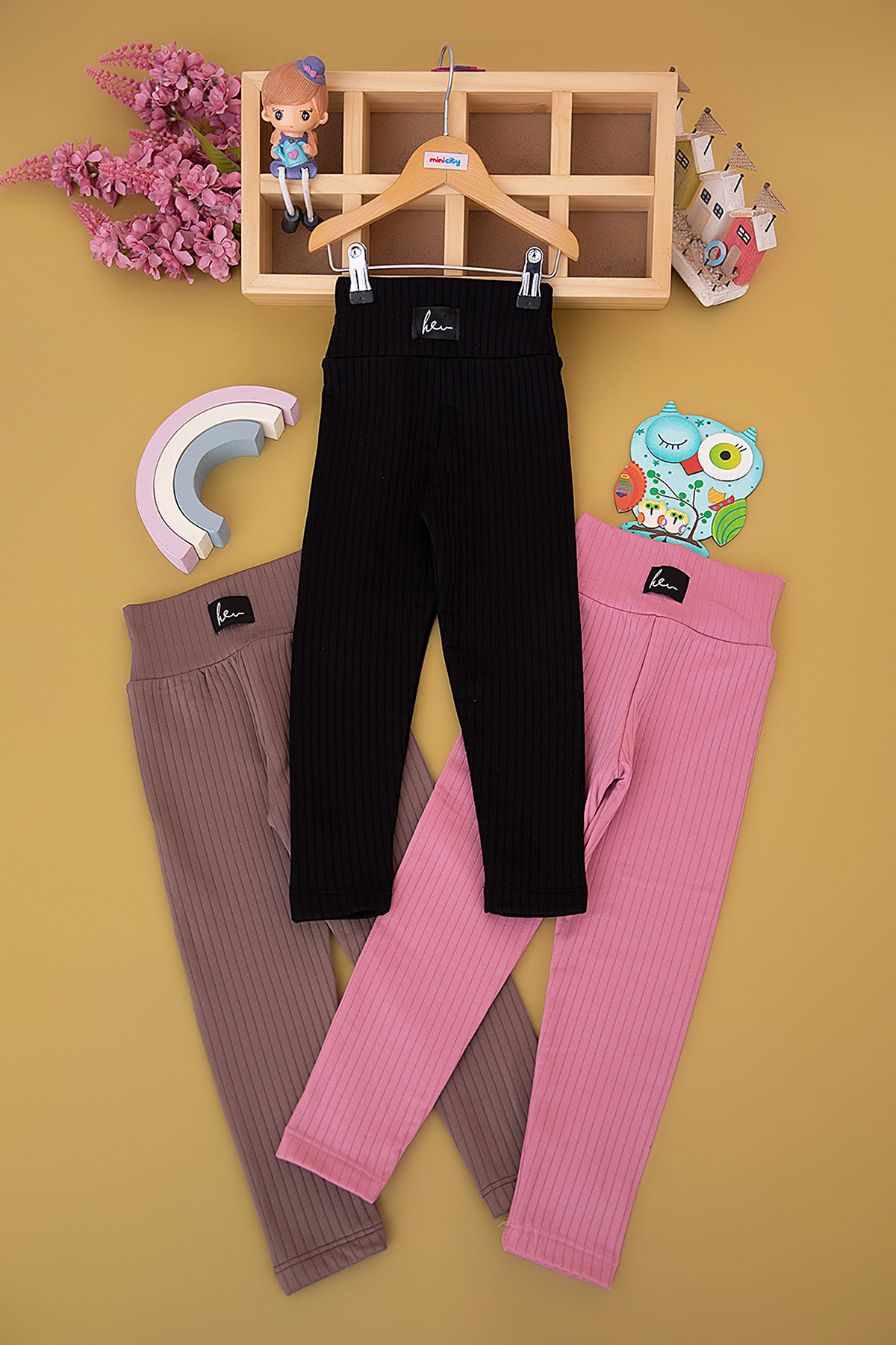 Kız Çocuk Üçlü Raporlu Baskılı Şardonlu Tayt