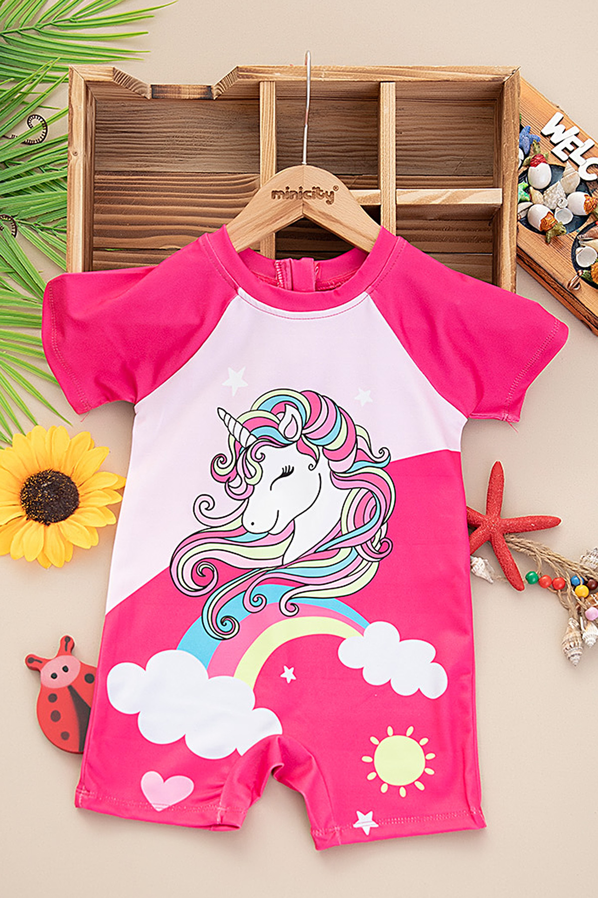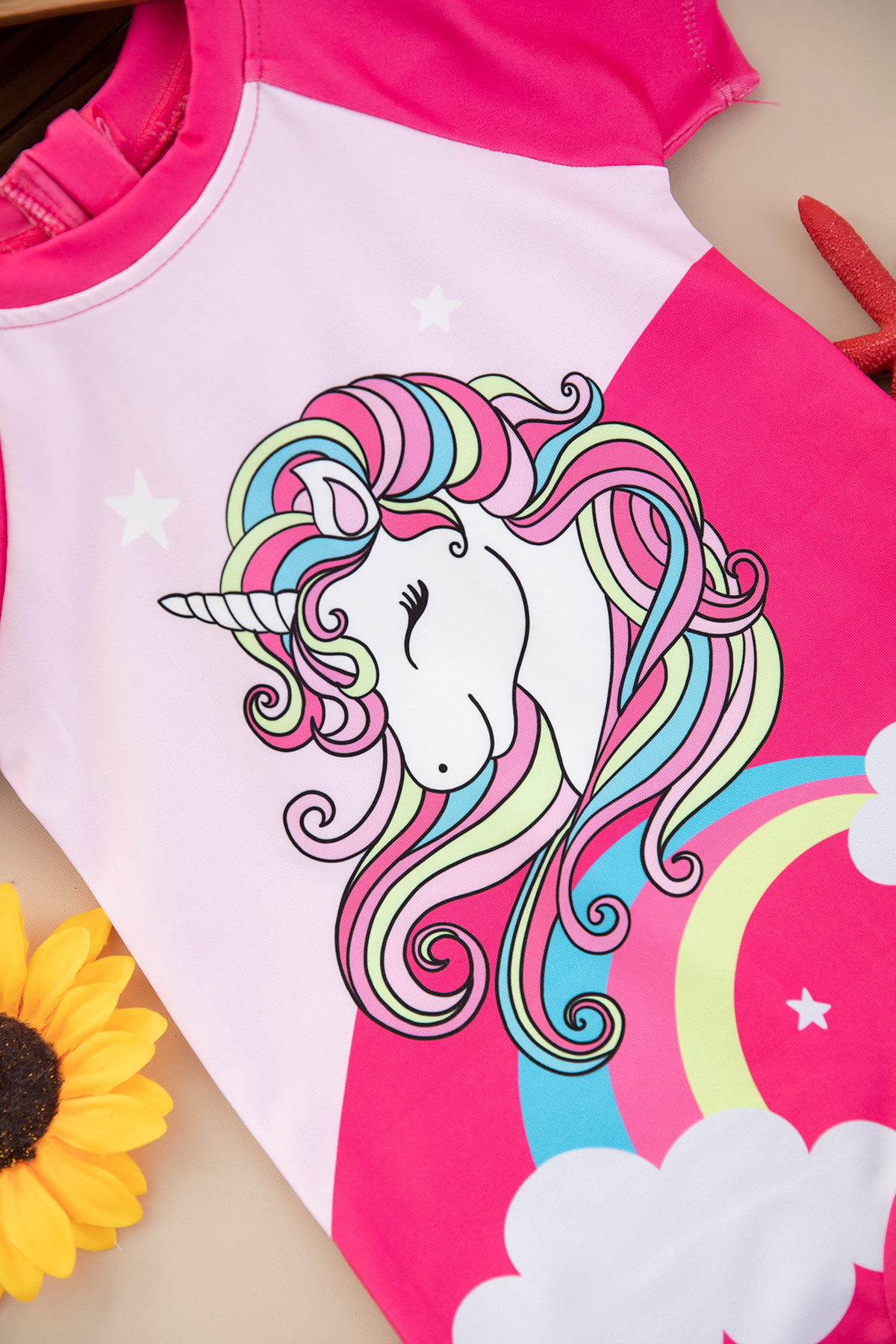 Kız Çocuk Unicorn Baskılı Şort Mayo - 6902 (3-7 Yaş)