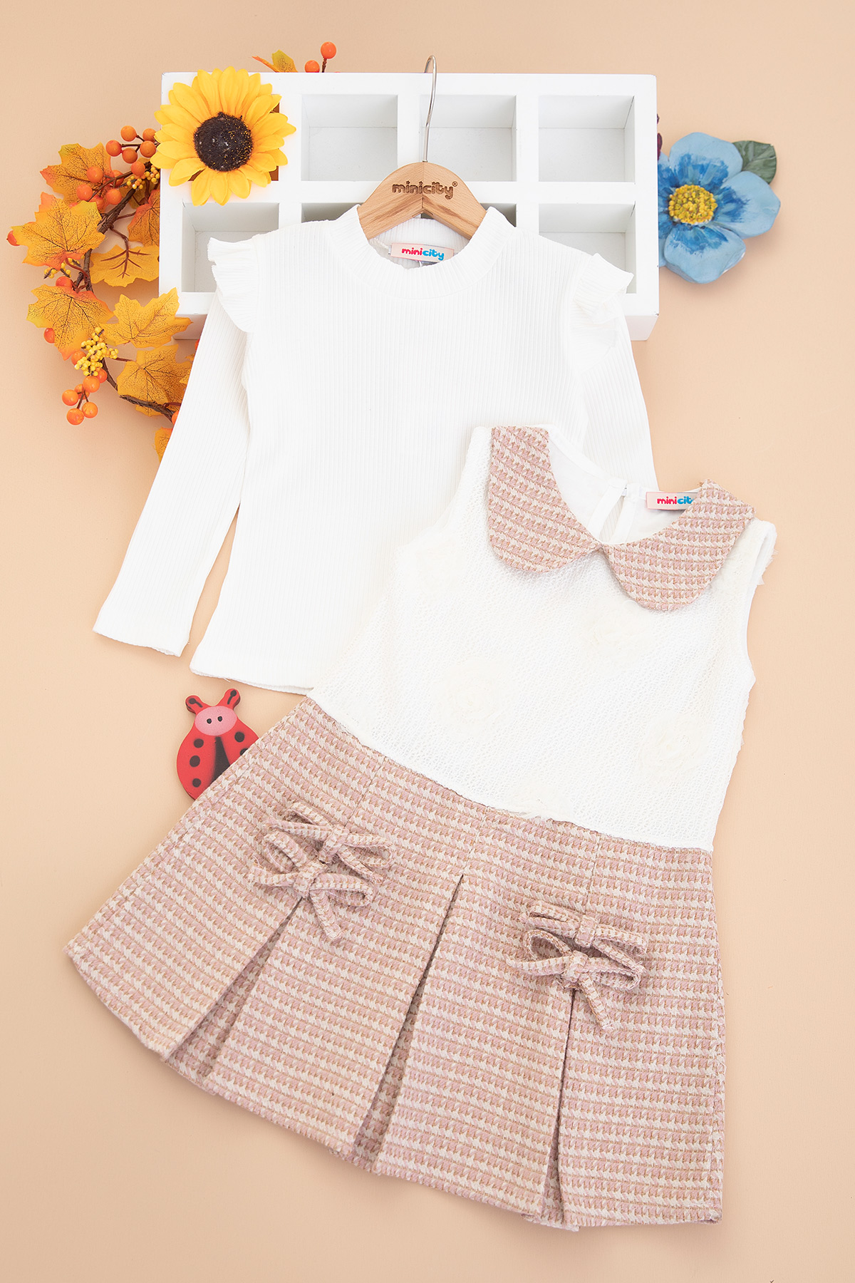 Kız Çocuk Üstü Güllü Kazayağı Elbise - 357 (3-6 Yaş)
