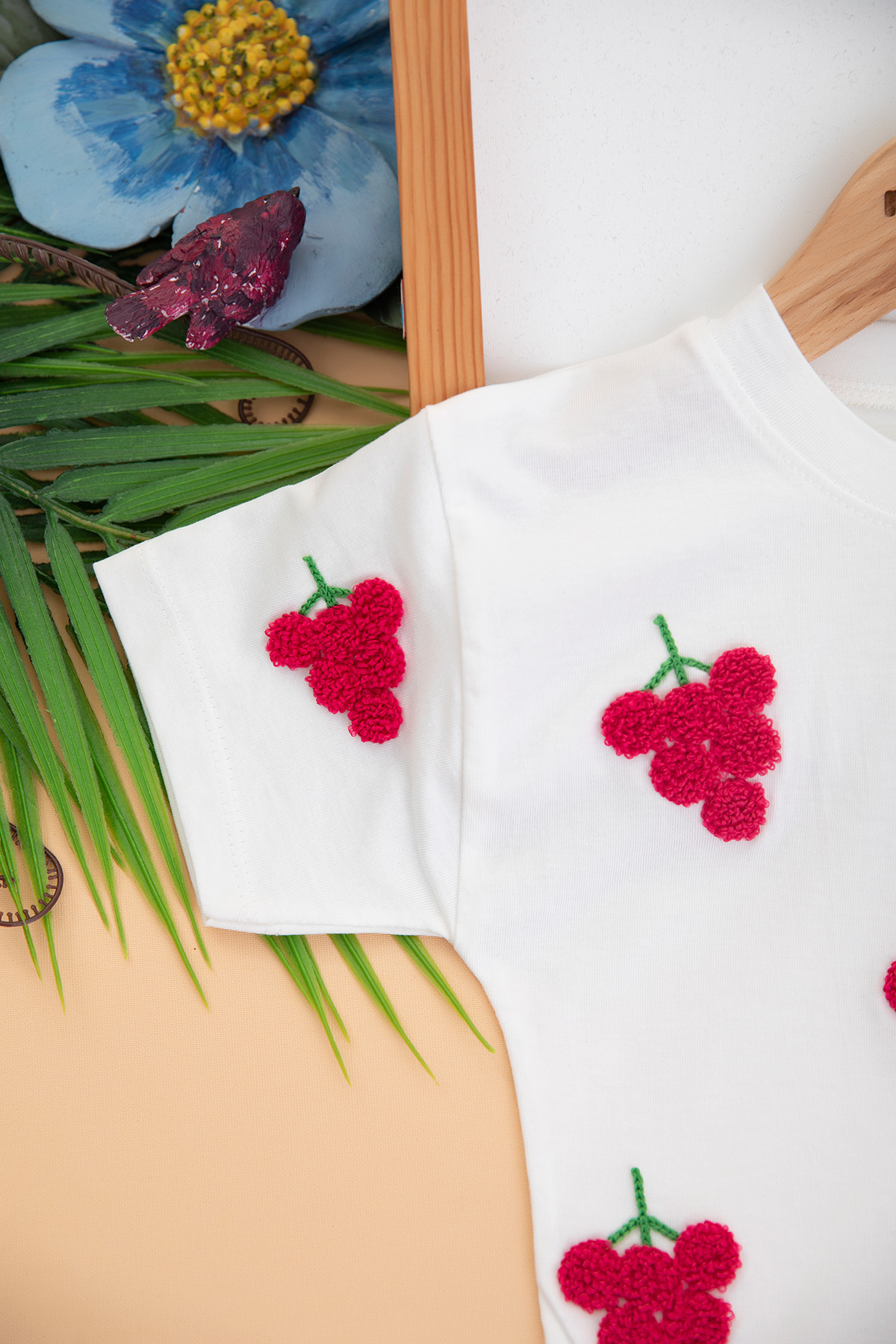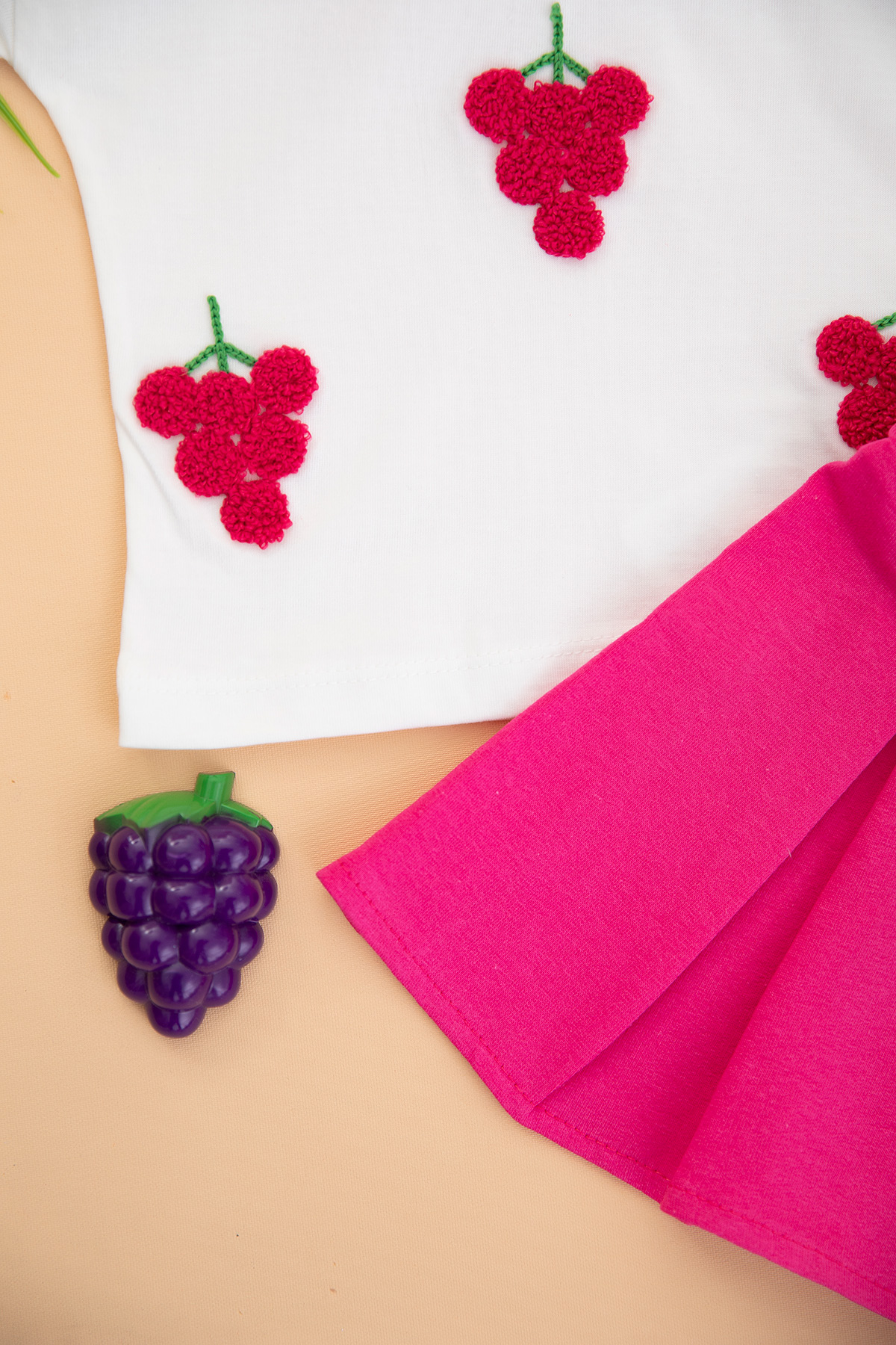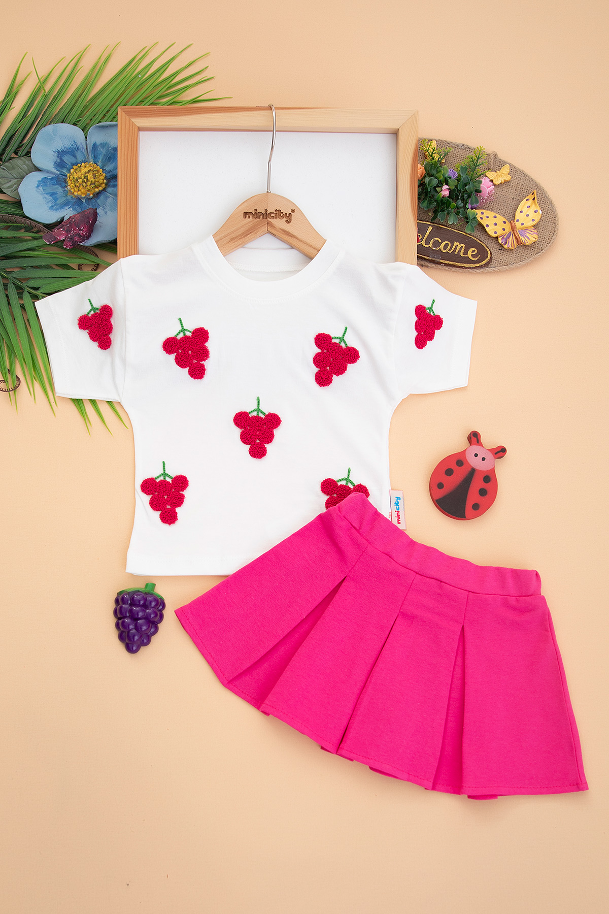 Kız Çocuk Üzüm Nakışlı Etekli Takım - 3014 (1-4 Yaş)