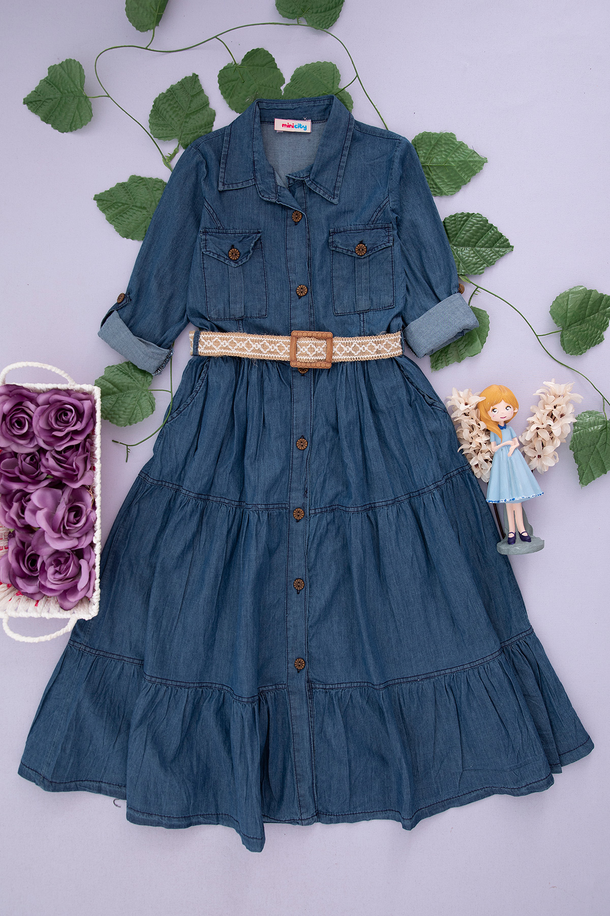 Kız Çocuk Uzun Kot Elbise - 1531 (11-15 Yaş)