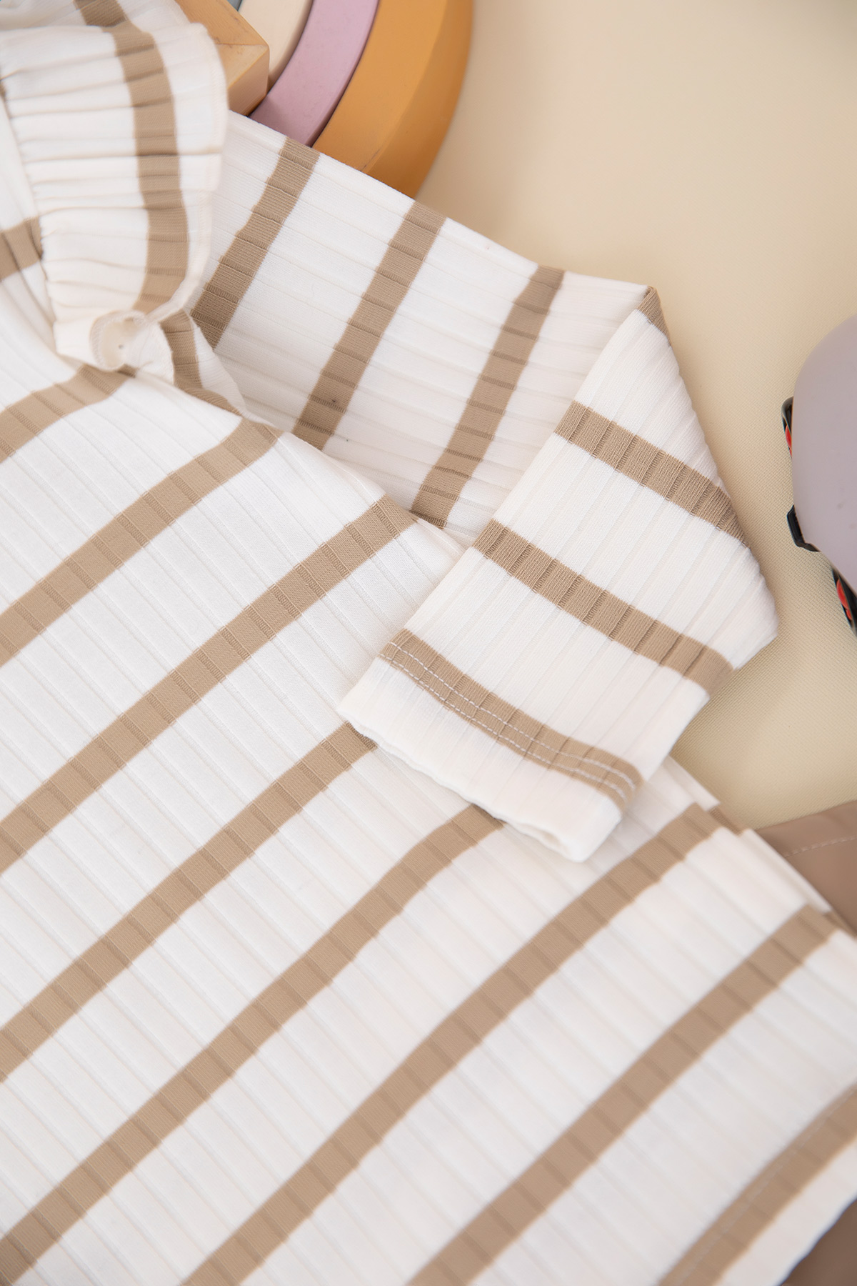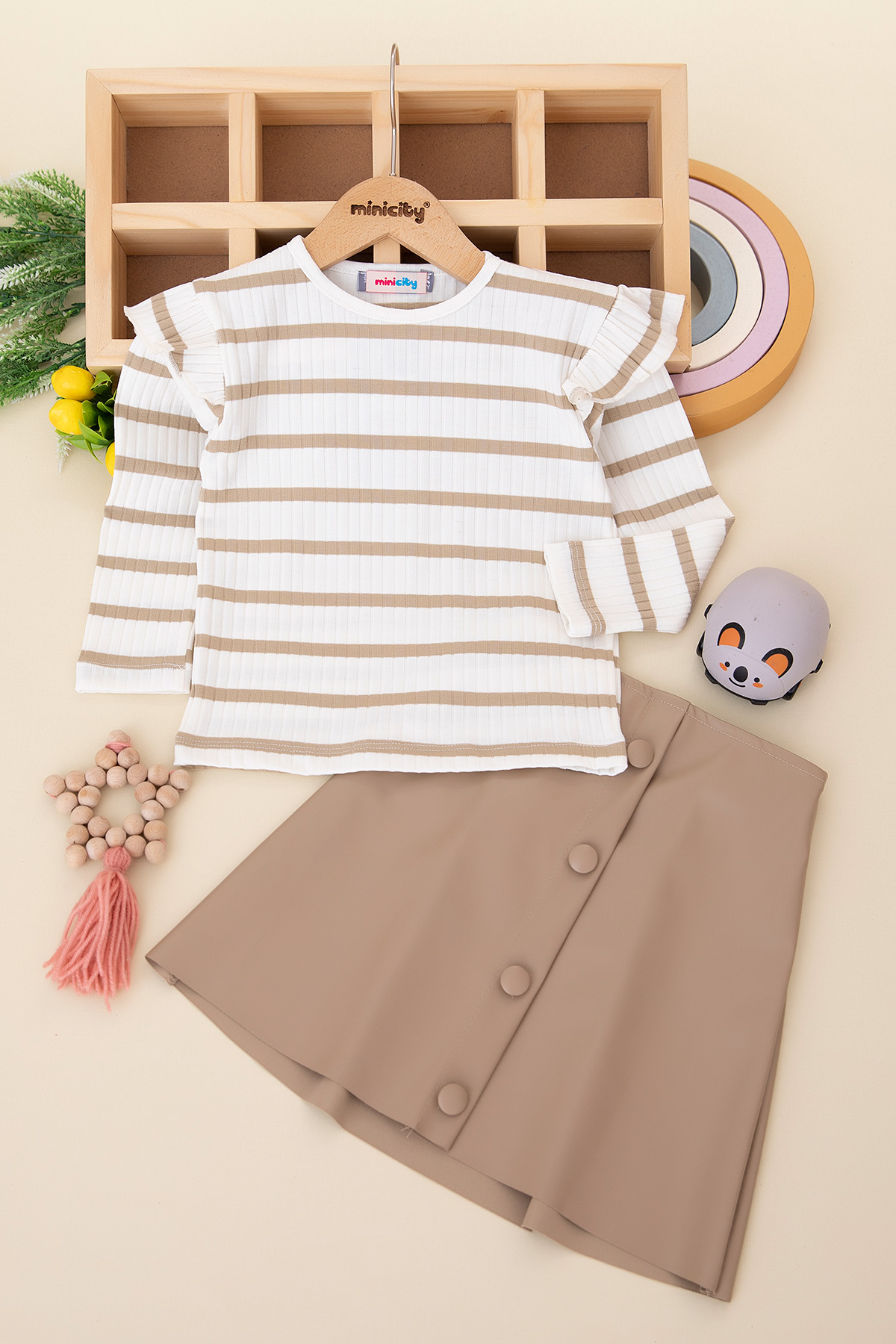Kız Çocuk Viskon Çizgili Deri Takım - 3733 (4-8 Yaş)